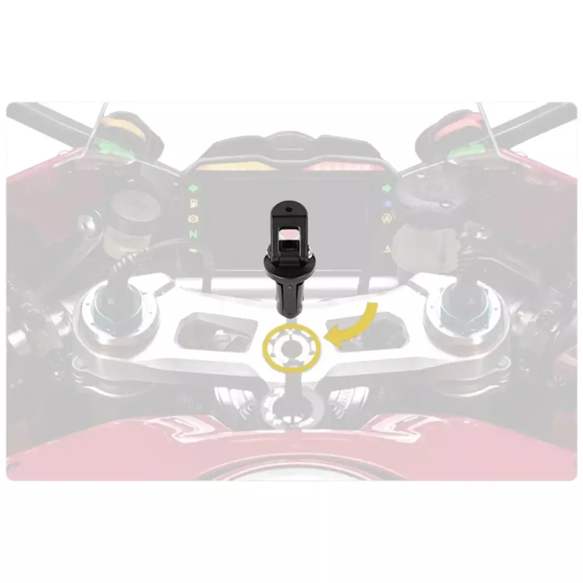 Fixez votre système Chigee AIO-5 au centre de votre moto sportive grâce au support axe de direction universel.