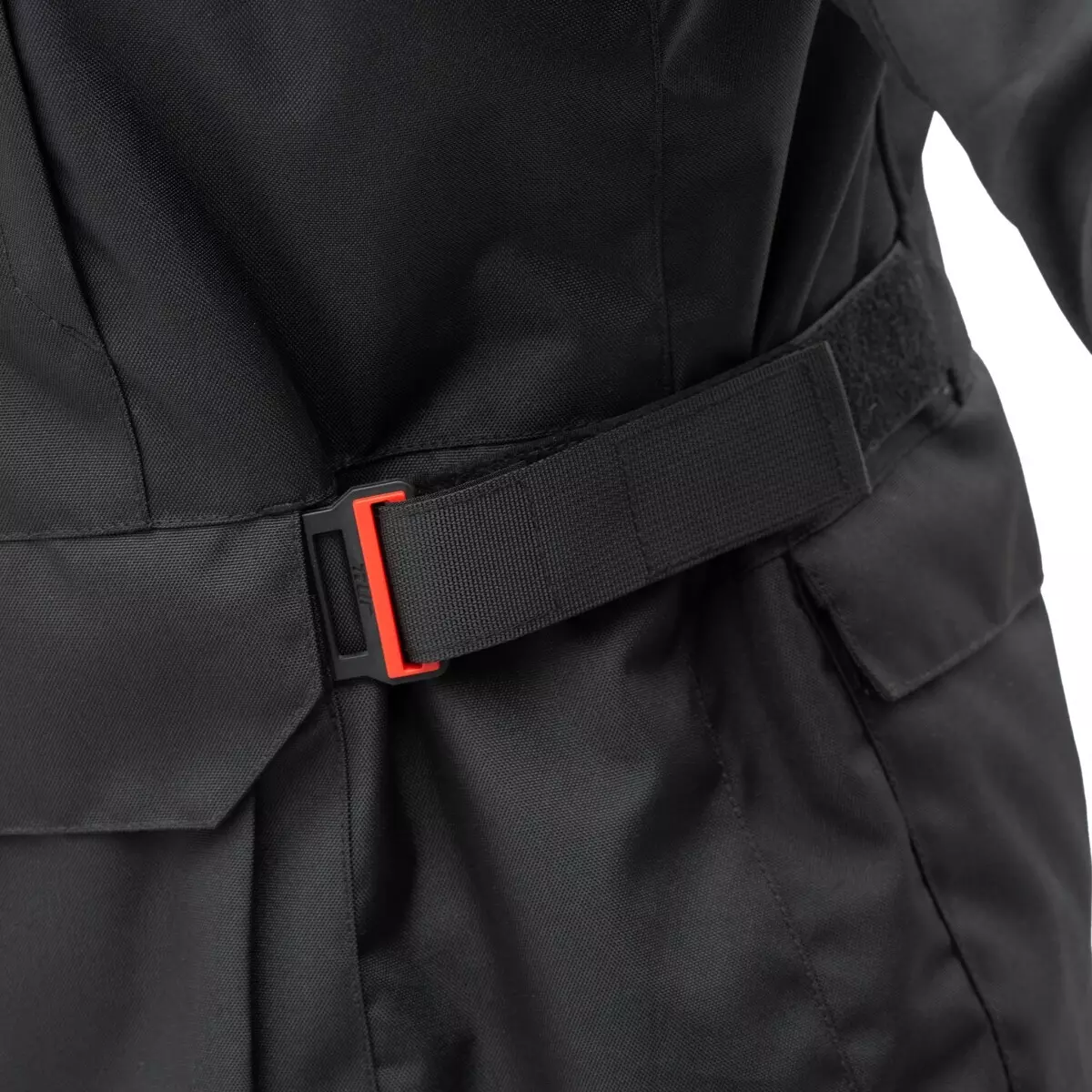 Cette veste assure également une sécurité accrue avec des zones réfléchissantes à haute visibilité pour être mieux perçu sur la route. Le confort de conduite est optimisé par un col souple avec fermeture micrométrique, des réglages précis aux bras, aux hanches et au bas de la veste pour un ajustement personnalisé, et un dispositif stretch pour la relier à n'importe quel pantalon compatible.