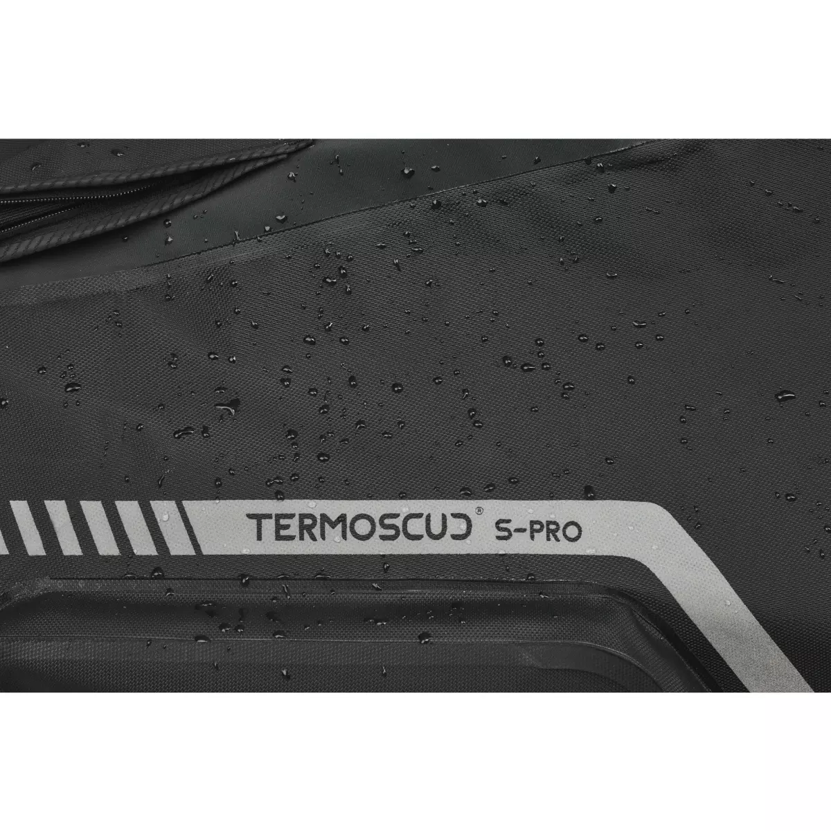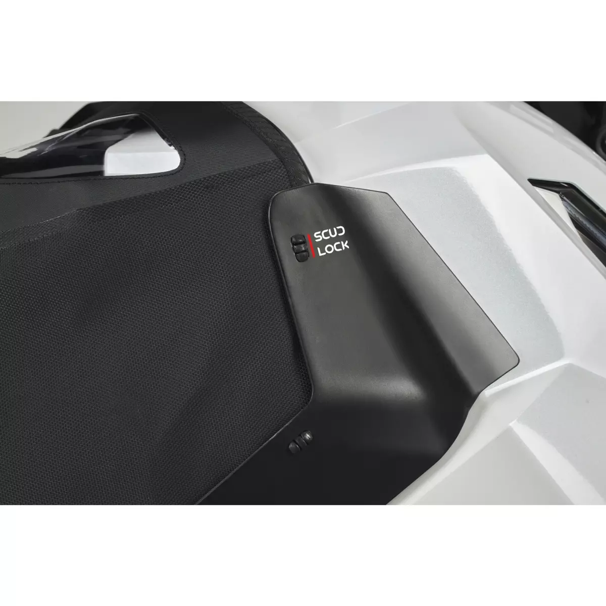 Dernier né de la gamme Termoscud® PRO, ce tablier est équipé du nouveau système Scudlock. Il allie élégance et simplicité d’utilisation : après installation du Spoiler Aero-Frame 3D à l’aide des vis et des adhésifs 3M™ VHB™ fournis, il suffit de clipser le tablier sur le spoiler pour que l’ensemble s’intègre parfaitement, offrant ainsi une protection optimale contre les intempéries tout au long de l’année. Autre avantage : une housse extractible intégrée protège la selle en cas de besoin.