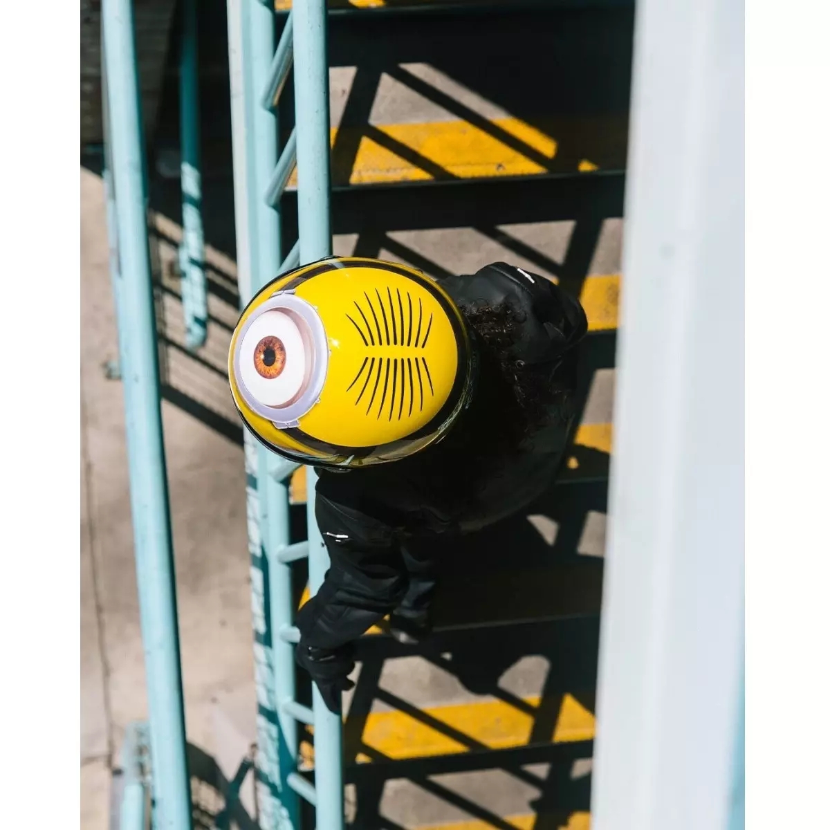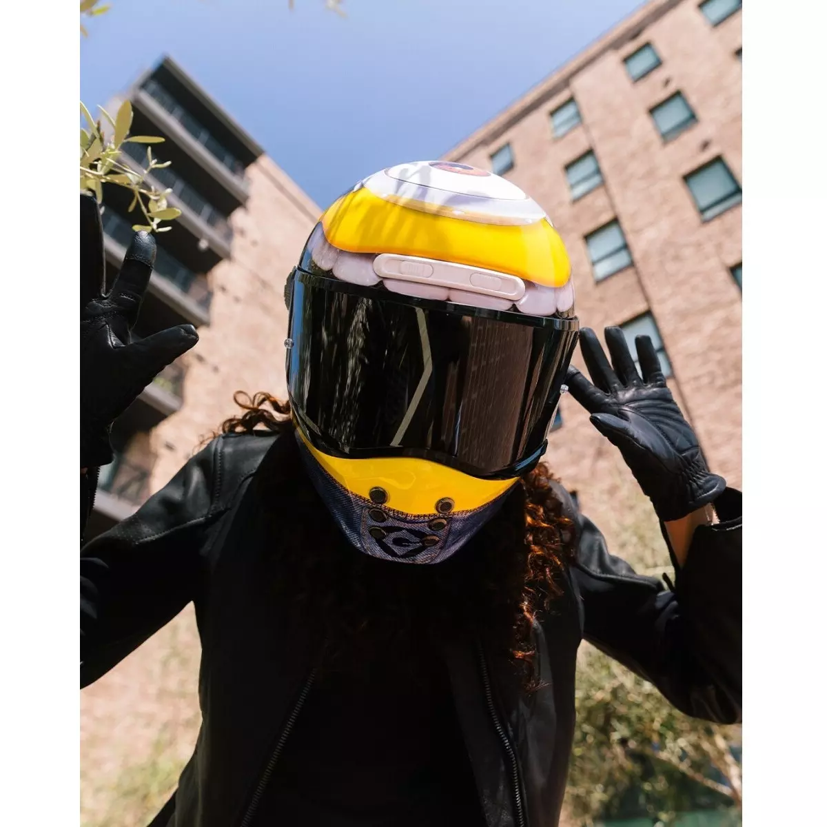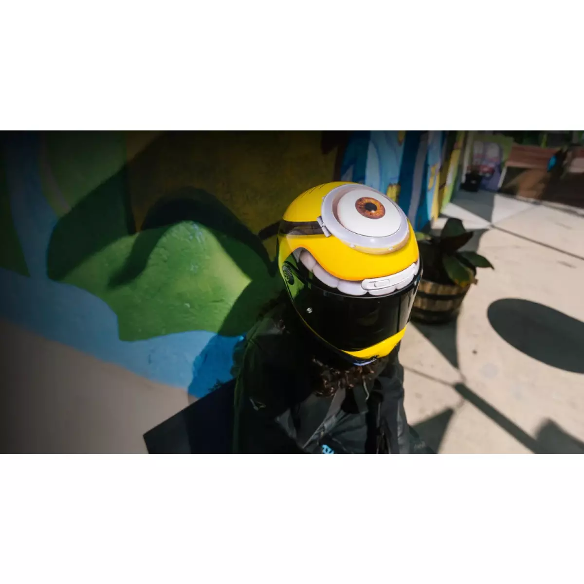 Plongez-vous dans l'univers de "Moi, Moche & Méchant" en roulant à l'effigie des Minions avec la décoration du personnage Stuart sur le casque HJC V10.