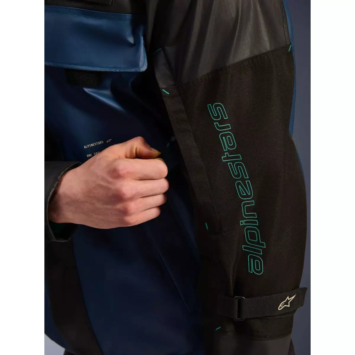 Alpinestars vous présente son blouson, le Mospher WP en coloris noir foncé et pétrole.