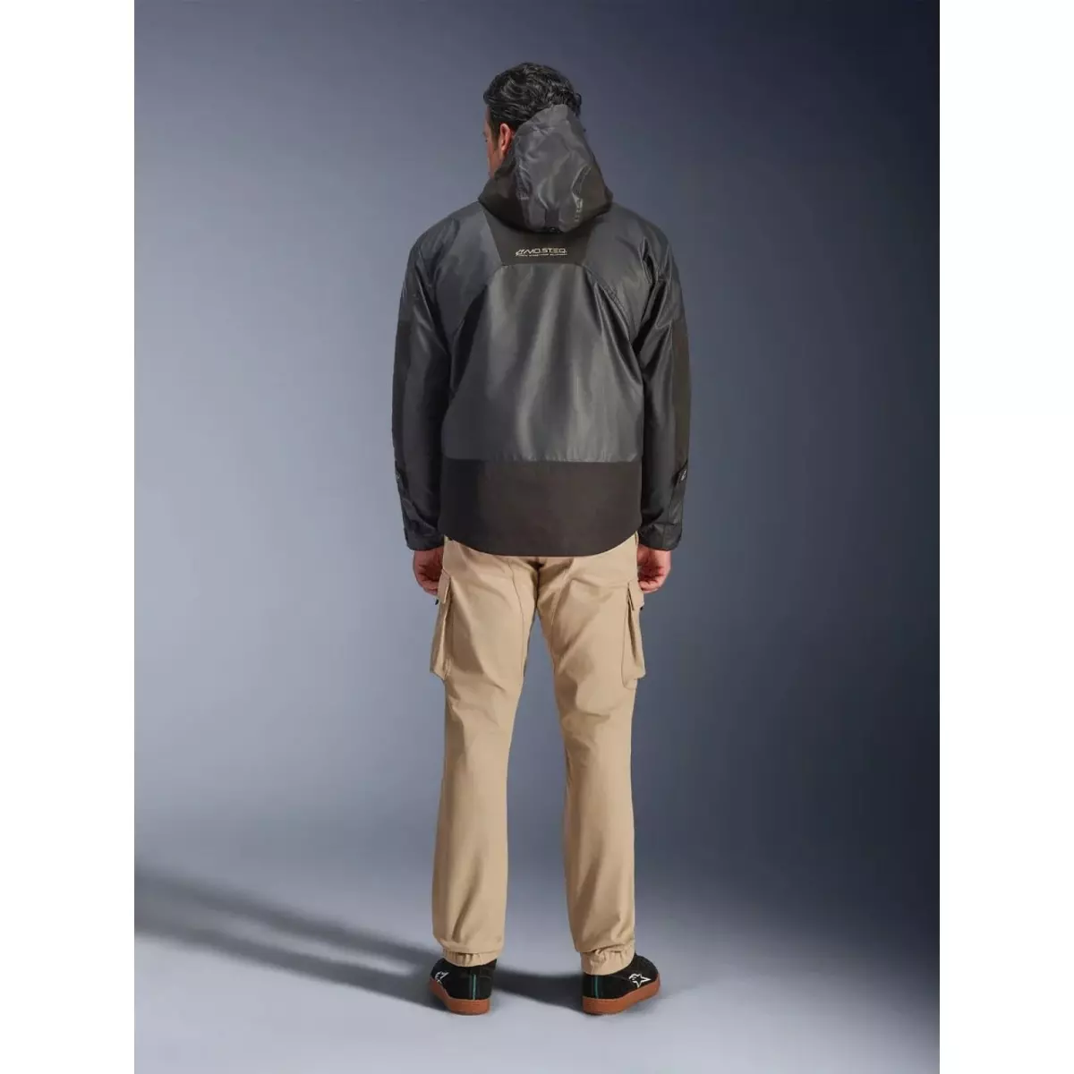 - Tissu ripstop enduit, renforcé avec du ripstop 300D dans les zones à forte usure (coudes, manches, capuche et ourlet inférieur du dos)