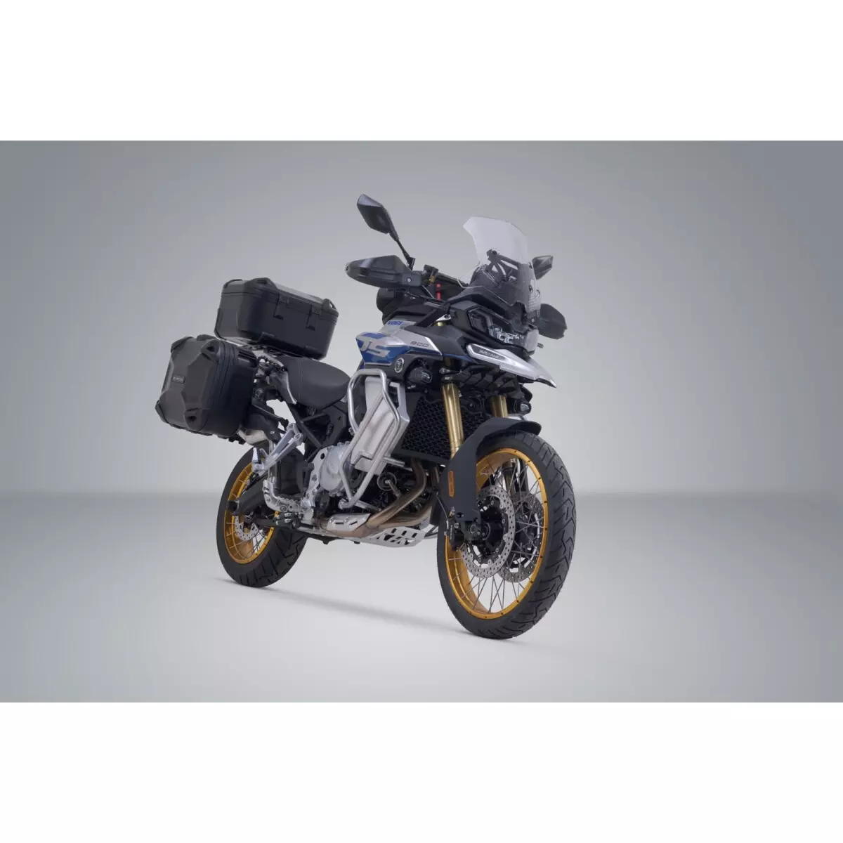 Les valises sont conçues en ABS thermoformé de 3 mm d’épaisseur : robustes, légères et totalement étanches à l’eau et à la poussière. Elles se fixent solidement sur leurs supports : une platine Adventure-Rack en aluminium et des supports PRO en acier, eux-mêmes ancrés aux points de fixation d’origine de la moto. Cette conception garantit un voyage en toute sérénité, quel que soit le type de trajet. Les valises, utilisables également comme top-case, épousent parfaitement la géométrie de la moto.