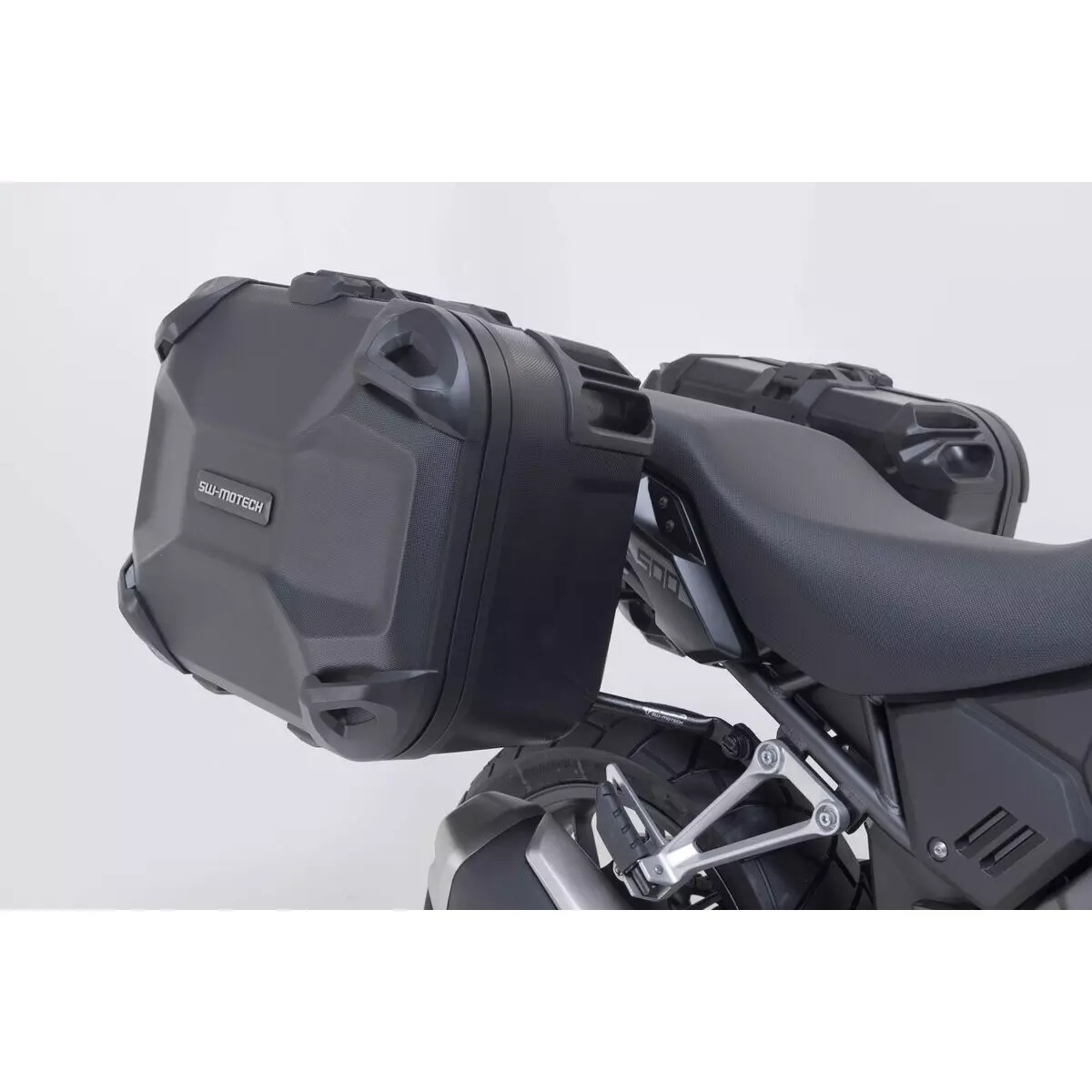 Les valises sont conçues en ABS thermoformé de 3 mm d’épaisseur : robustes, légères et totalement étanches à l’eau et à la poussière. Elles se fixent solidement sur leurs supports : une platine Street-Rack en aluminium et des supports PRO en acier, eux-mêmes ancrés aux points de fixation d’origine de la moto. Cette conception garantit un voyage en toute sérénité, quel que soit le type de trajet. Les valises, utilisables également comme top-case, épousent parfaitement la géométrie de la moto.