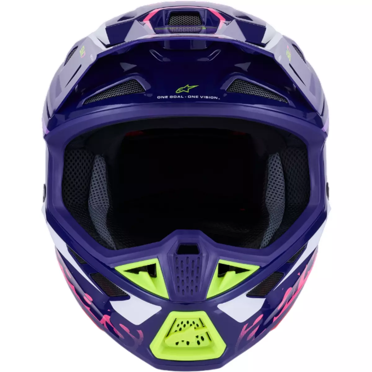 Alpinestars nous propose son casque cross, le Supertech S-M7 Deed en coloris violet et rose brillant.