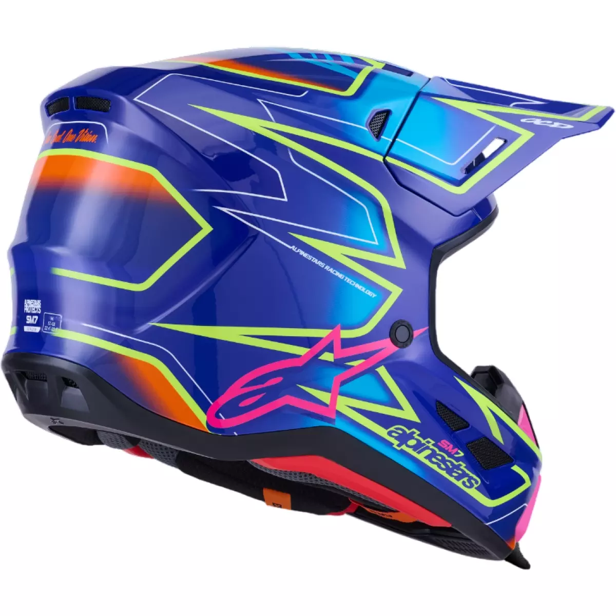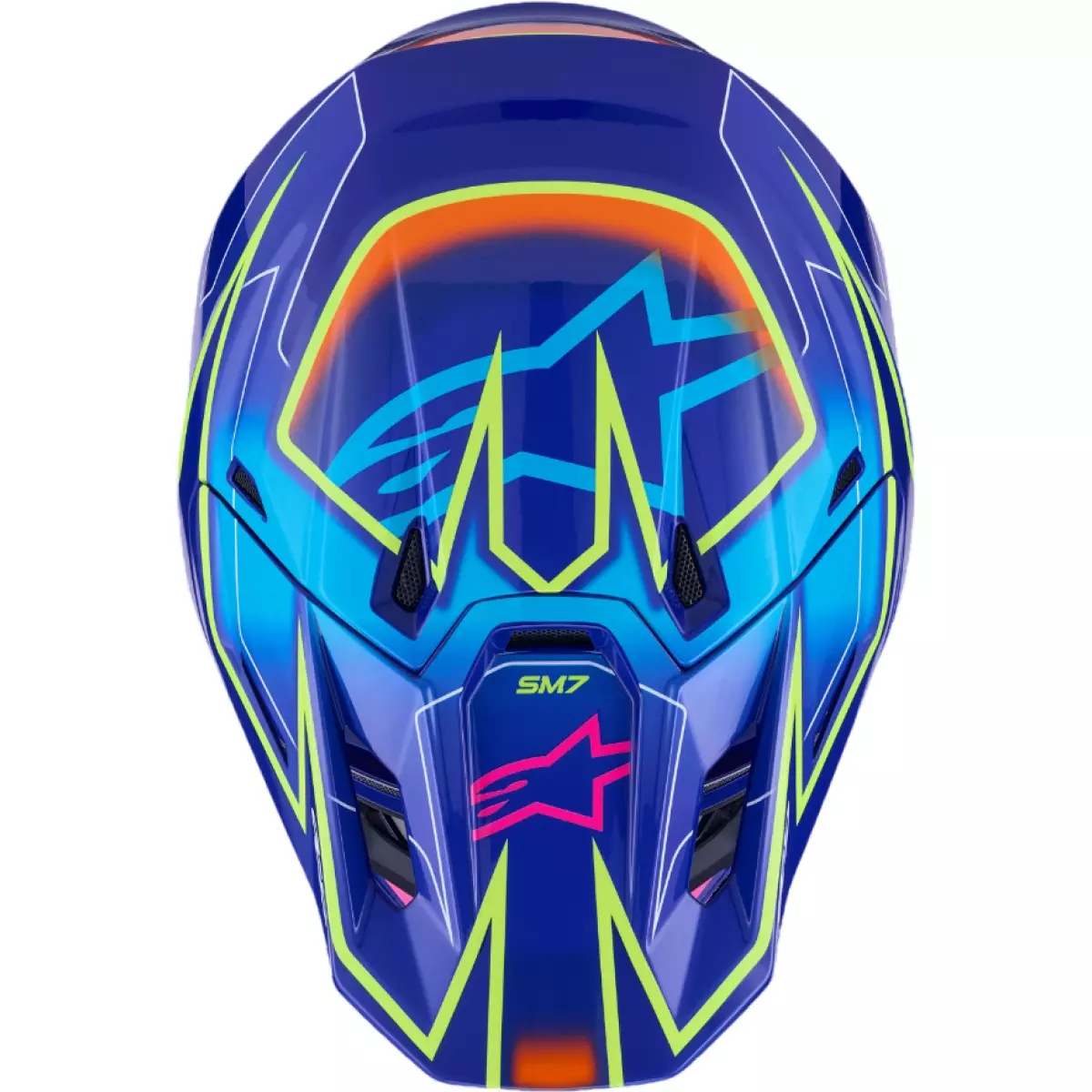 Casque Cross Alpinestars SM-7 Cast Bleu Rose Jaune Fluo