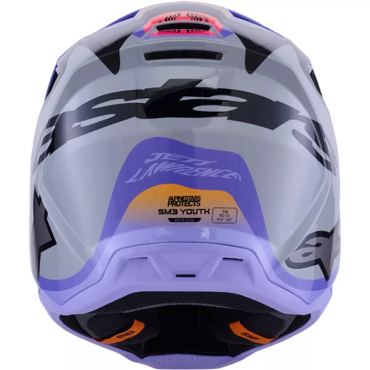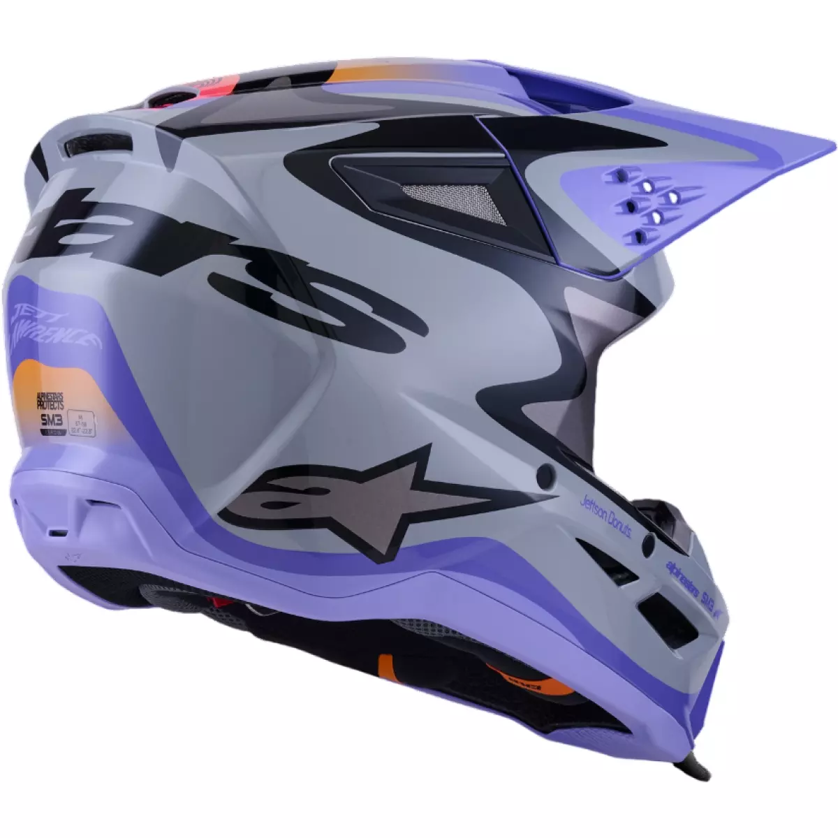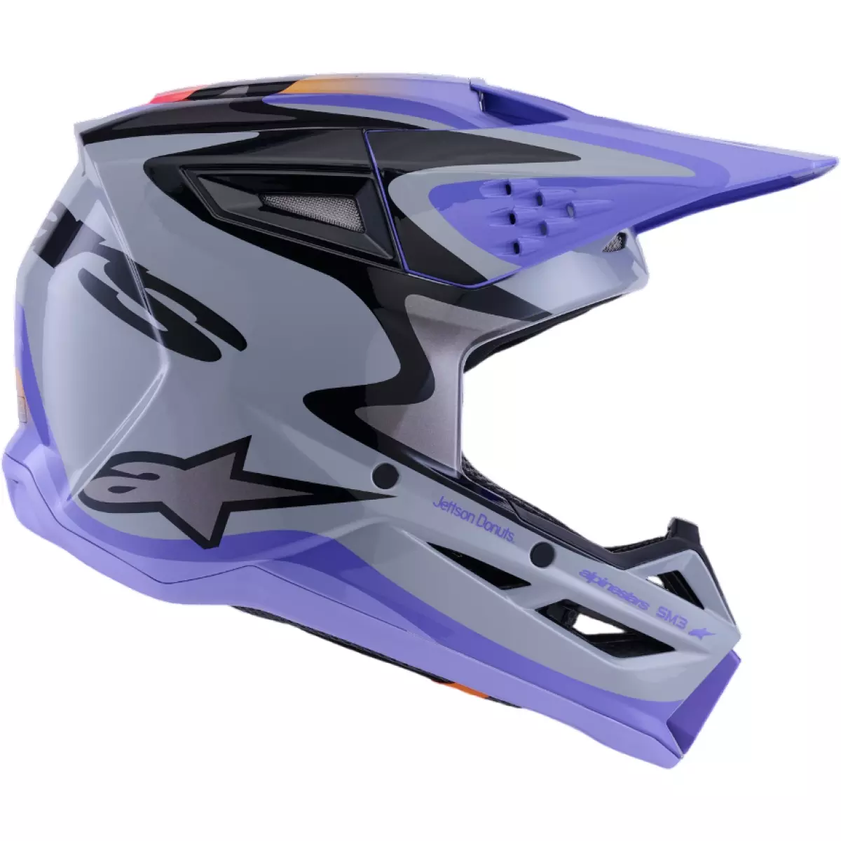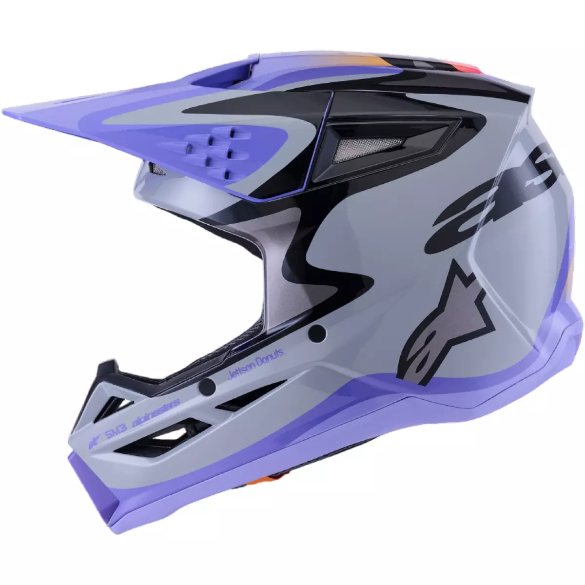 Alpinestars vous présente son casque cross, le SM3 Jettson en coloris en gris, violet et noir brillant.