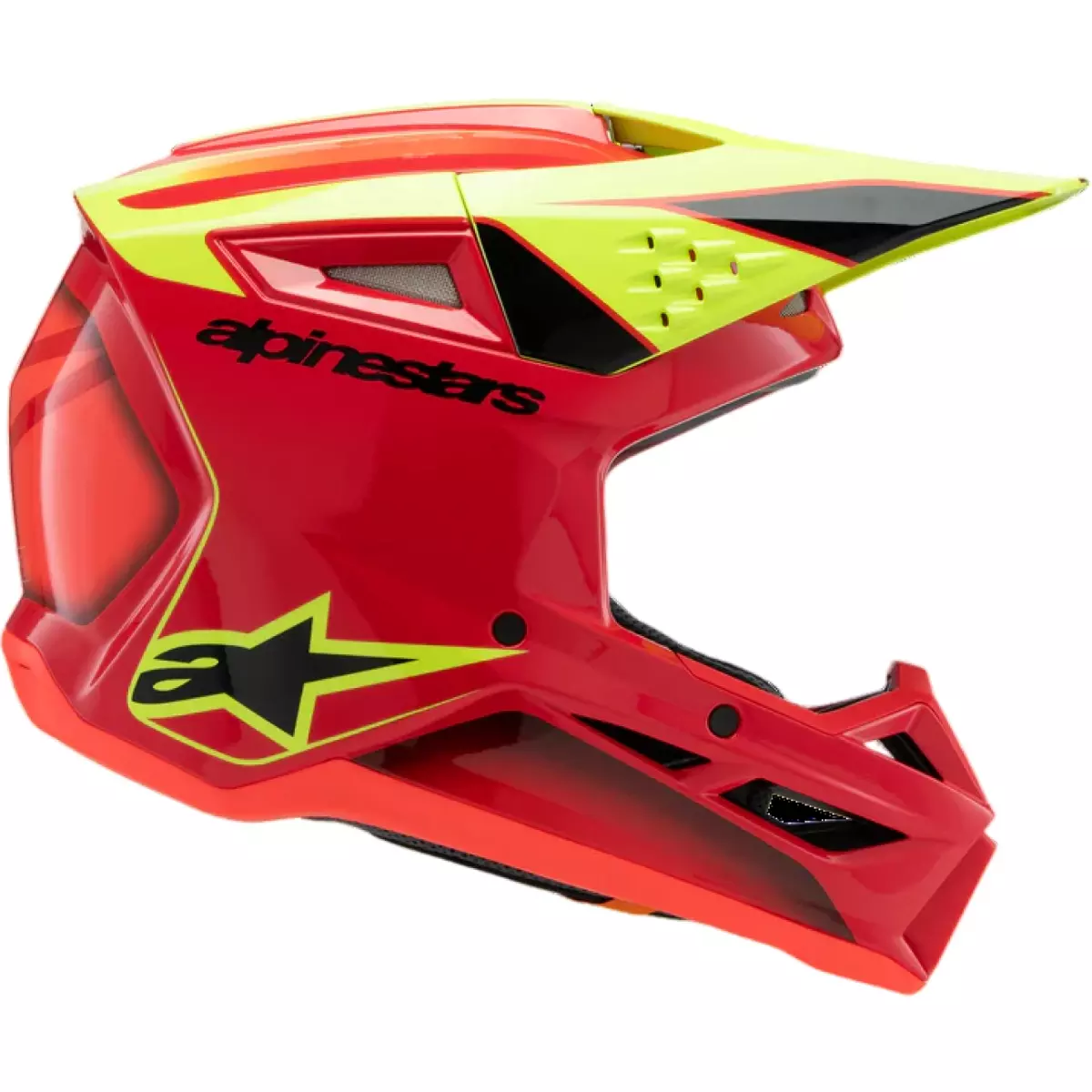 Alpinestars vous présente son casque cross, le SM3 Fray en coloris rouge, jaune fluo et noir brillant.