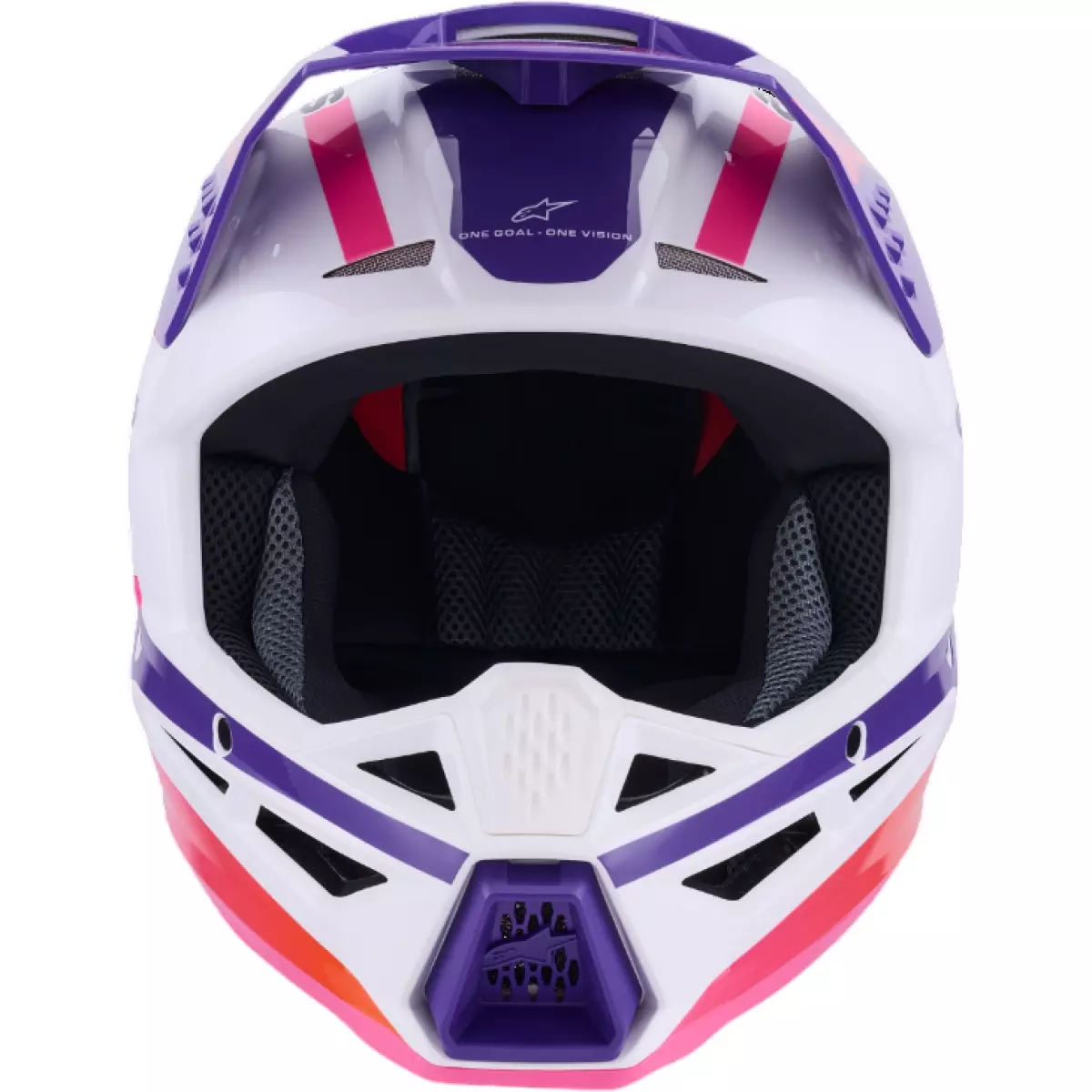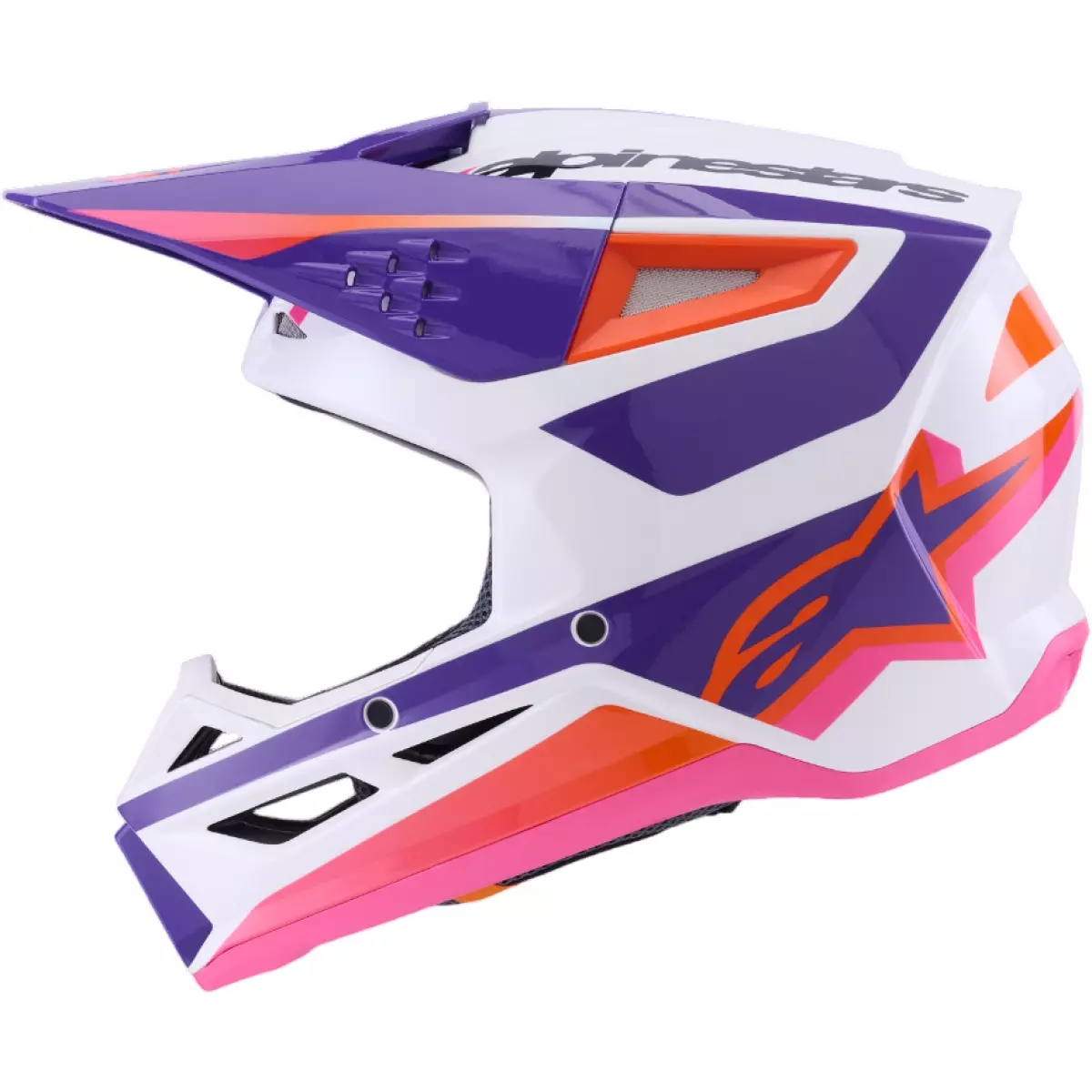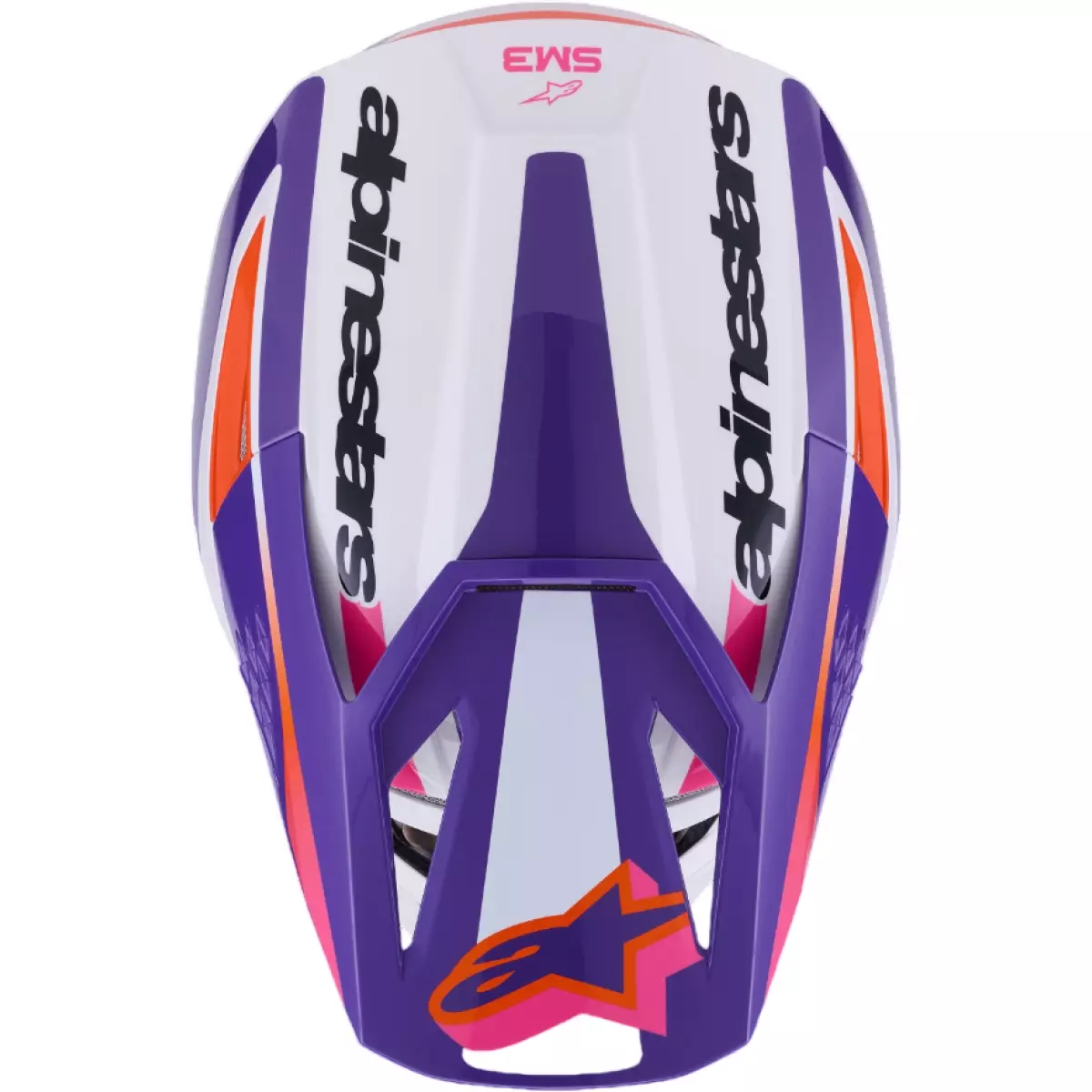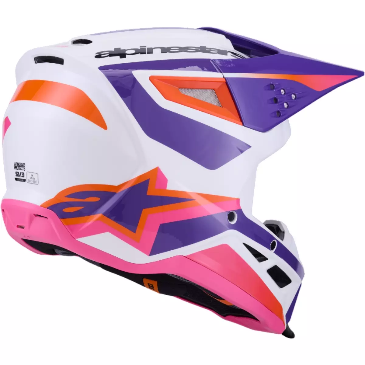 Alpinestars vous présente son casque cross pour le SM3 Heat en coloris blanc, violet et rose brillant.