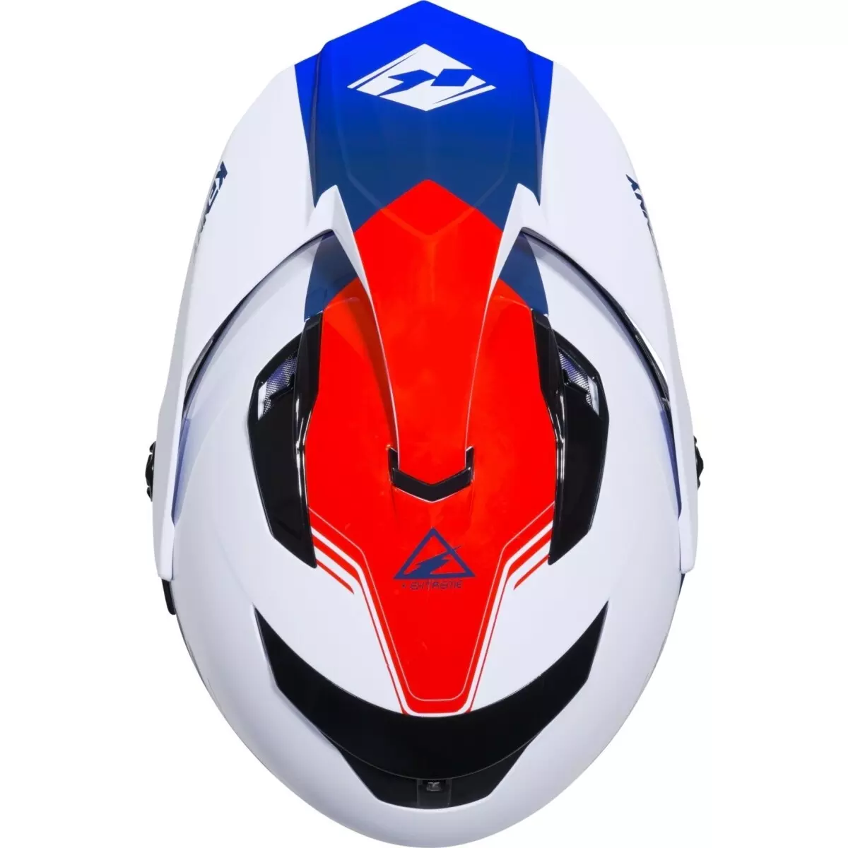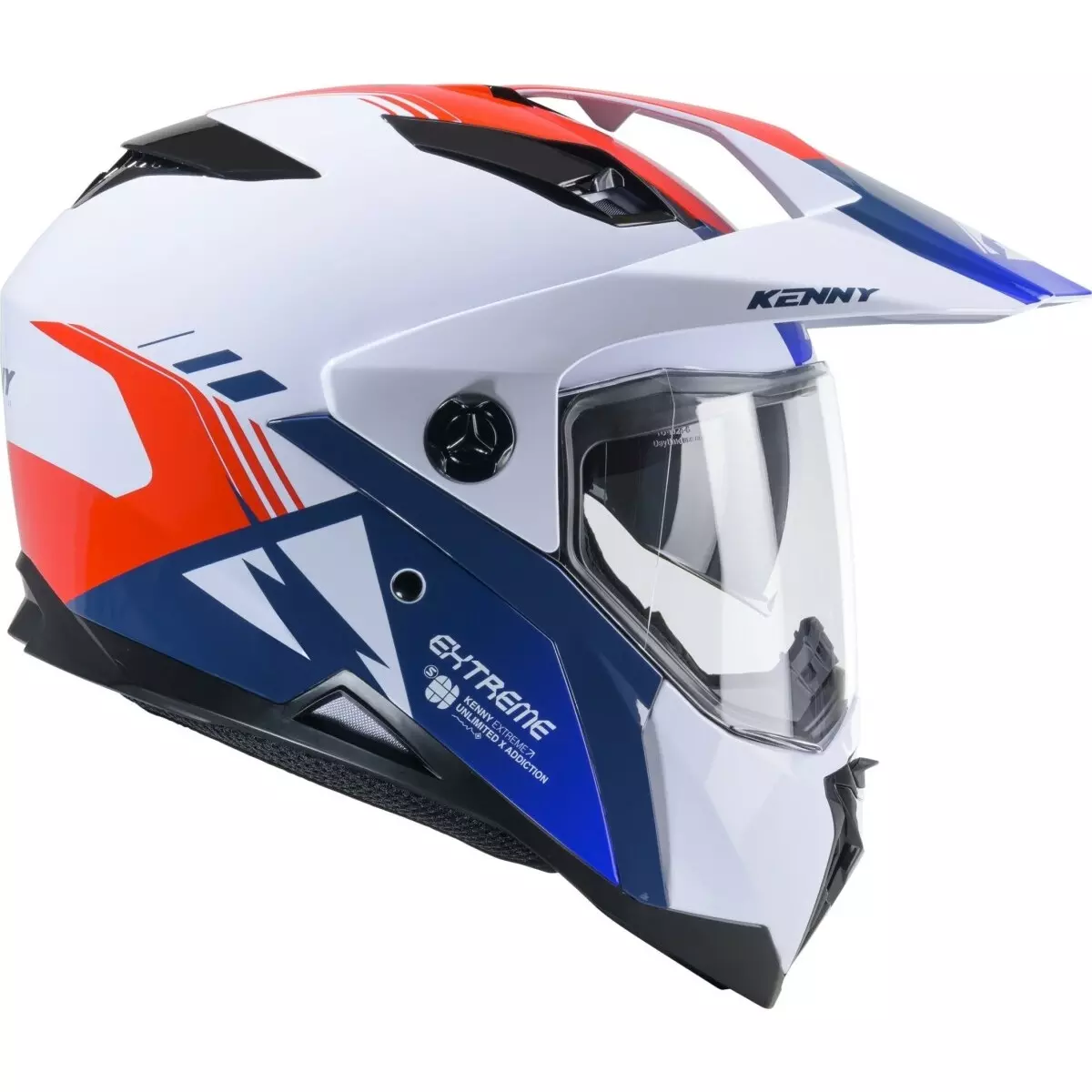 Kenny nous propose son casque intégral, l'Extreme Graphic Patriot en coloris bleu, blanc et rouge brillant.