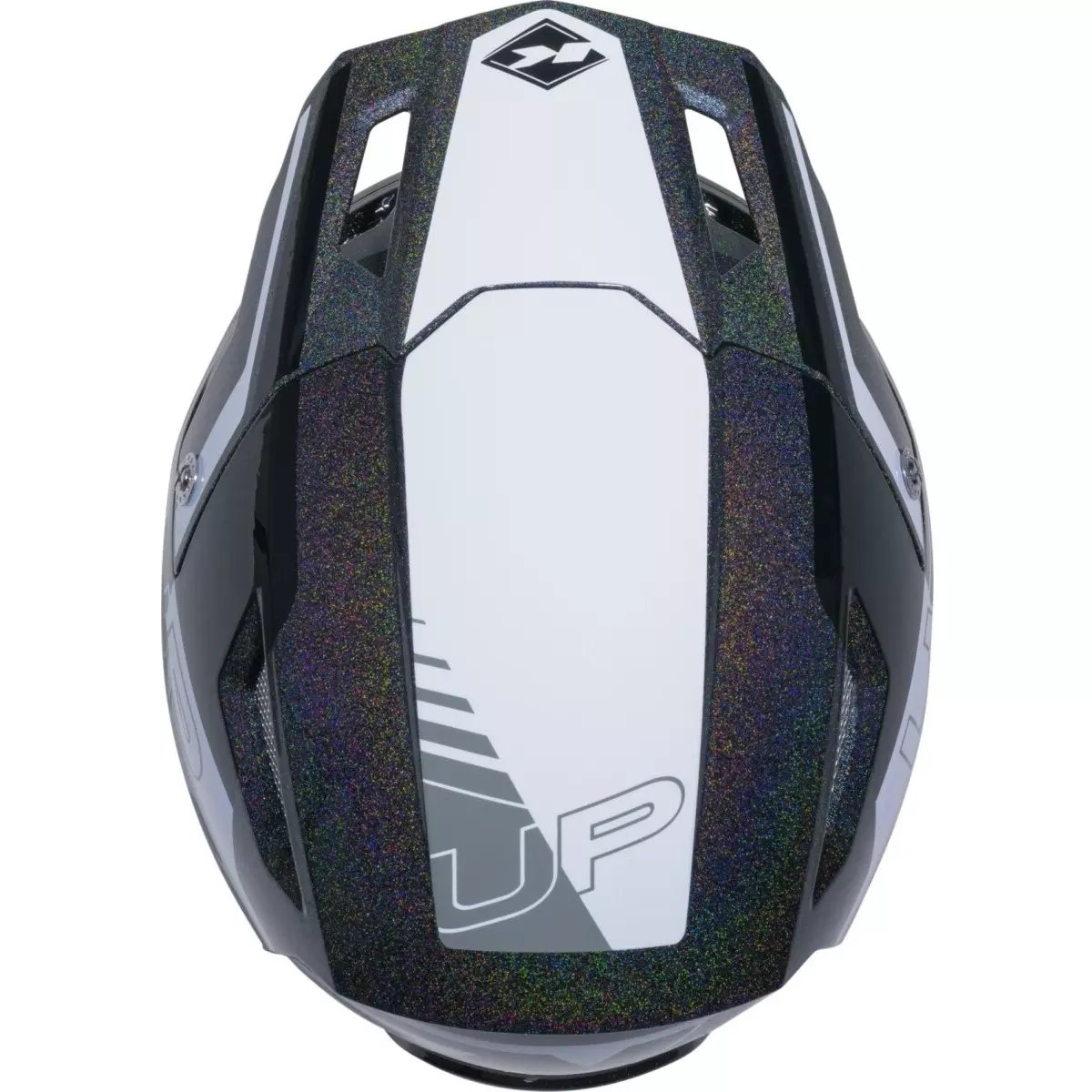 Kenny nous propose son casque trial, le Trial Up Graphic en coloris noir, gris et blanc brillant.