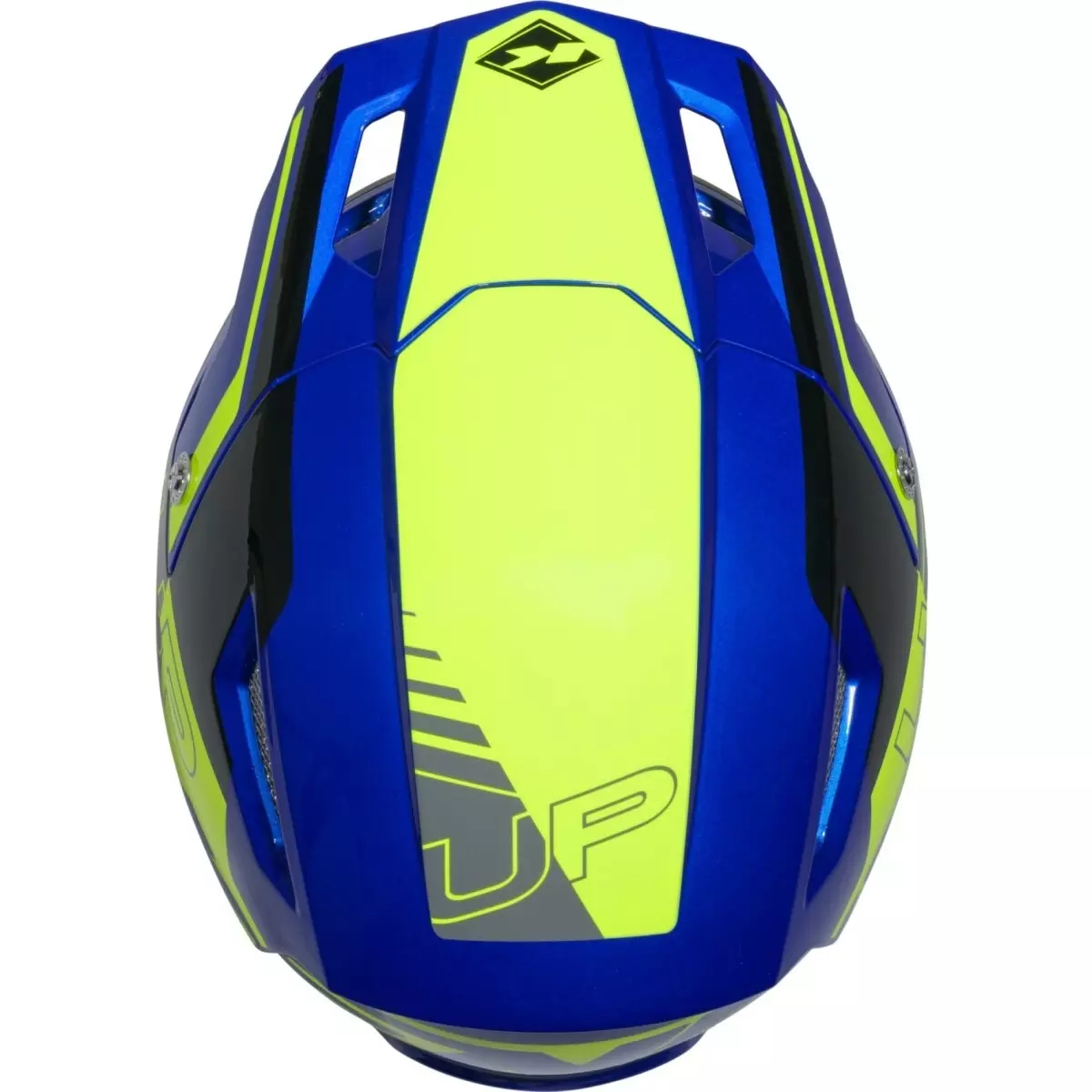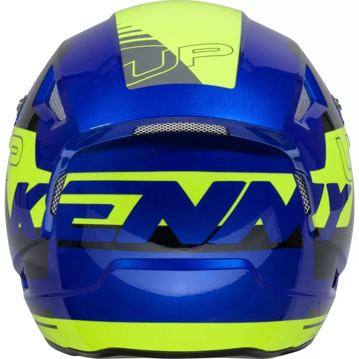 Kenny nous propose son casque trial, le Trial Up Graphic bleu et jaune brillant.