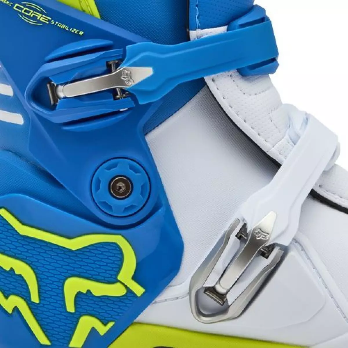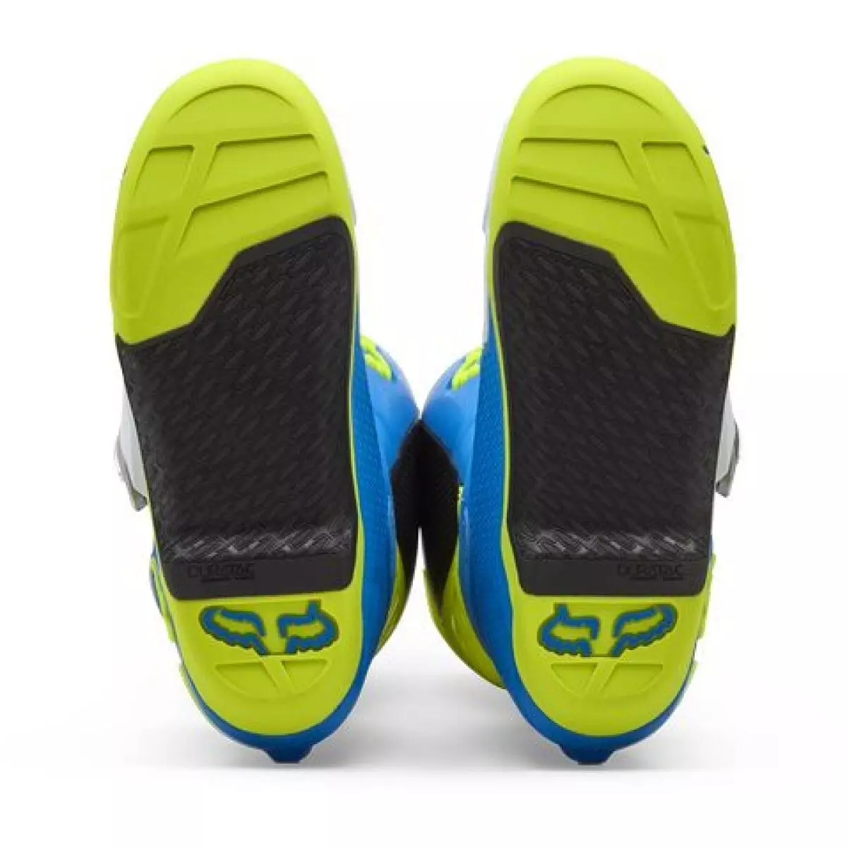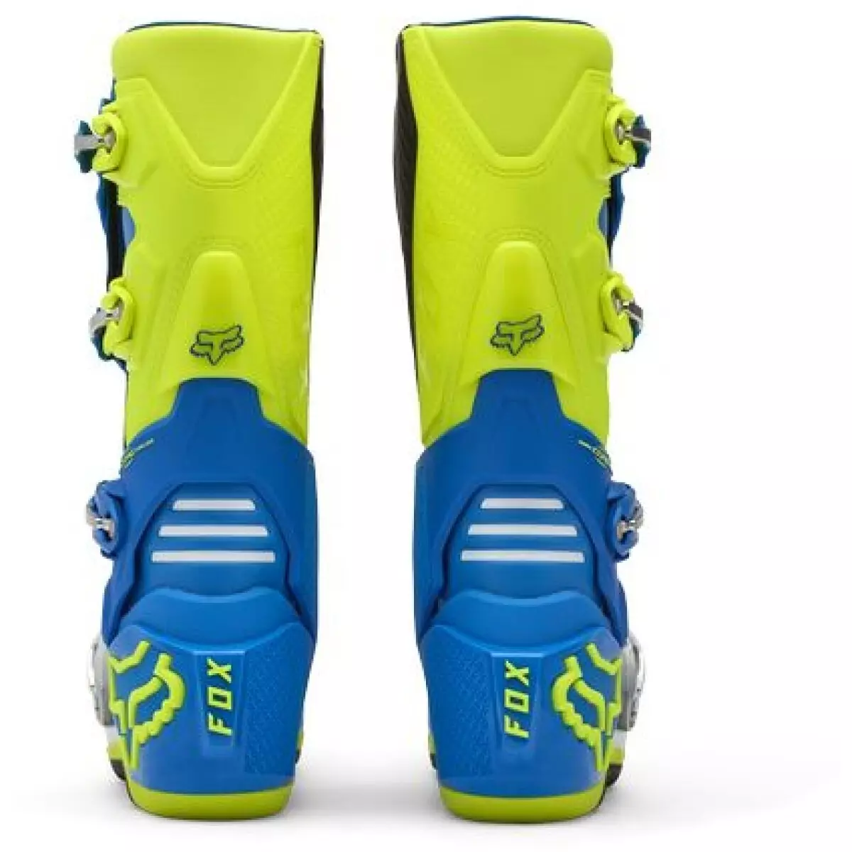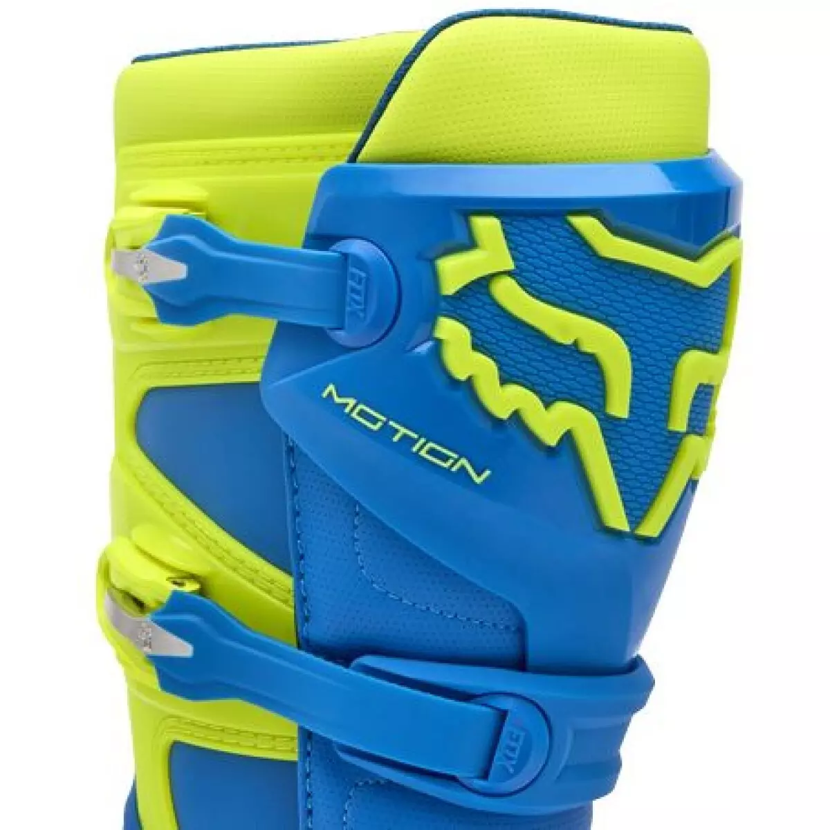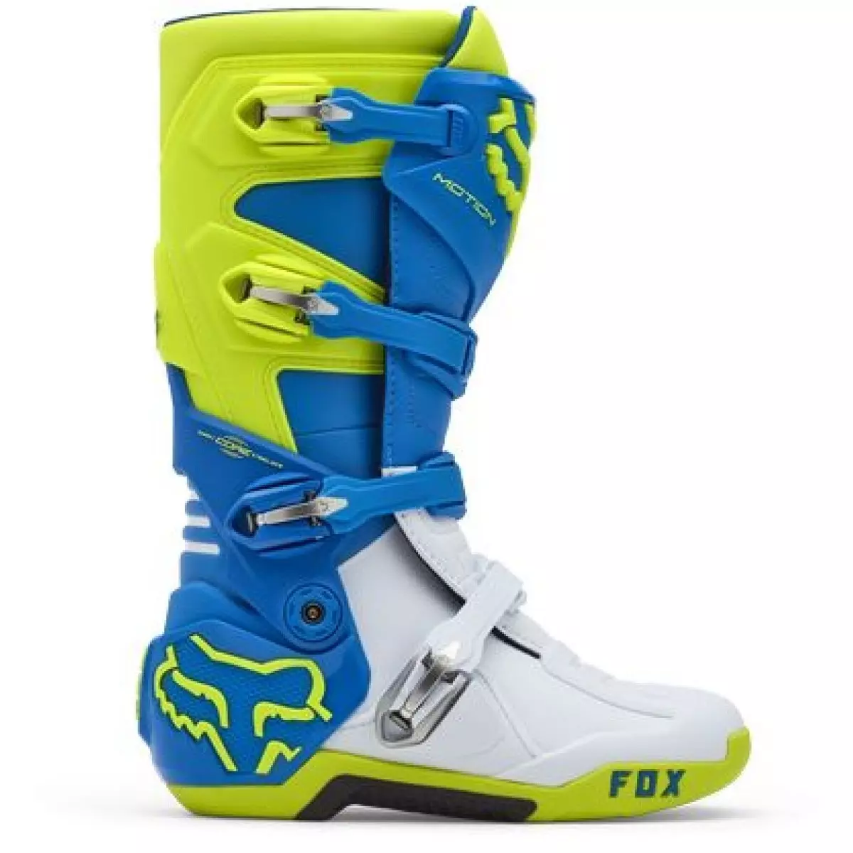 Fox vous présente ses bottes, les Motion en coloris bleu et jaune.