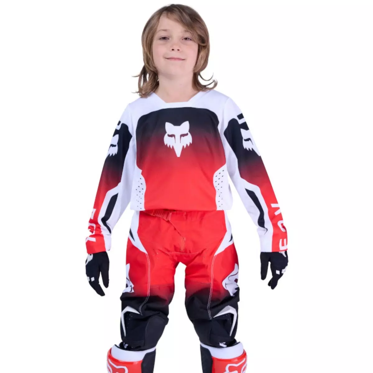Maillot Cross Enfant Fox 180 Shield Rouge Fluo