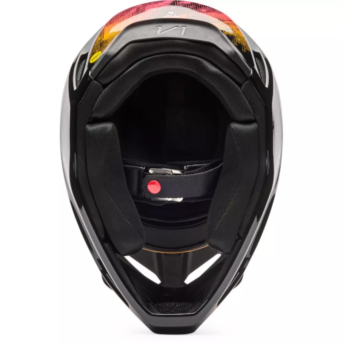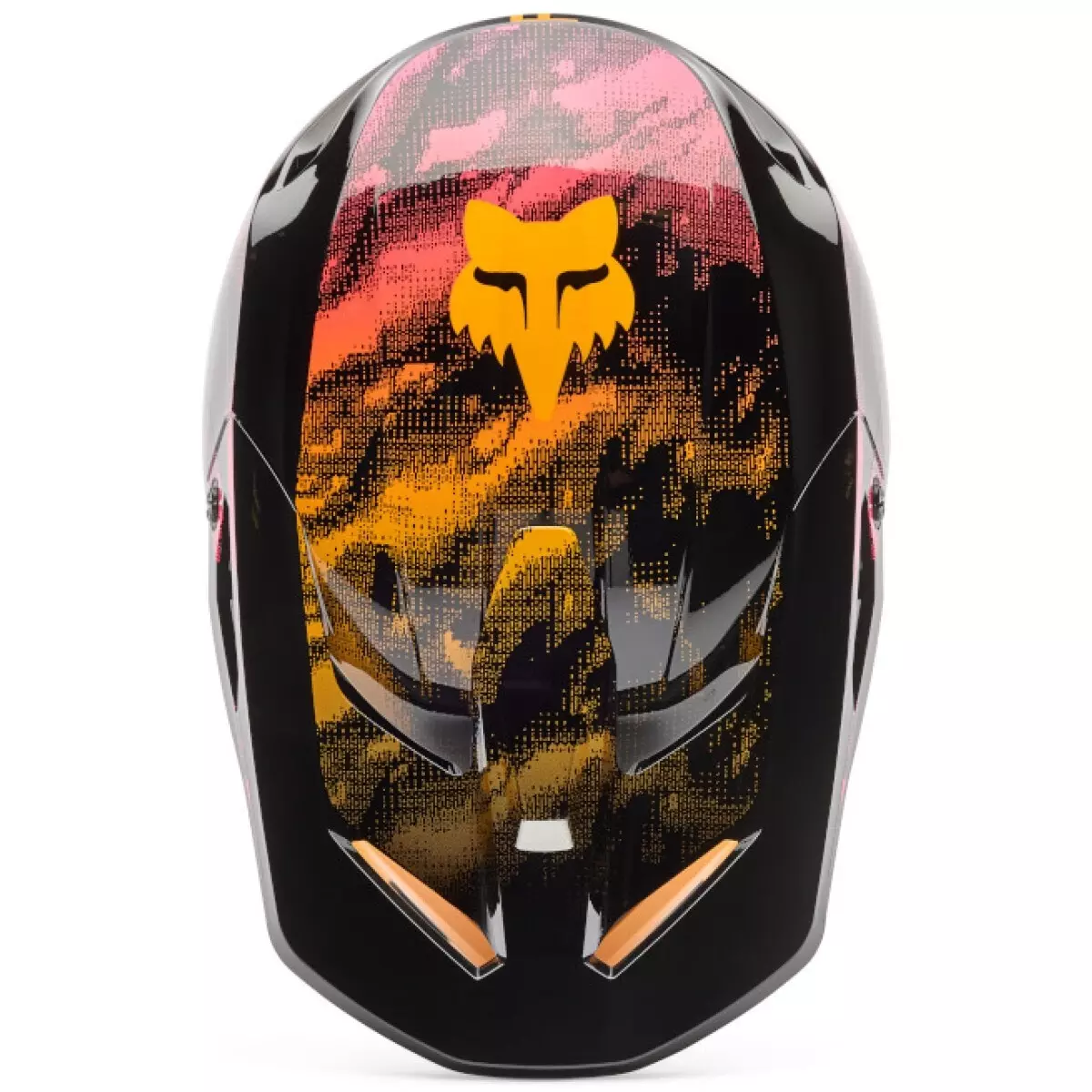 Fox vous présente son casque cross, le V1 Kairos Tgreen en coloris noir et orange.