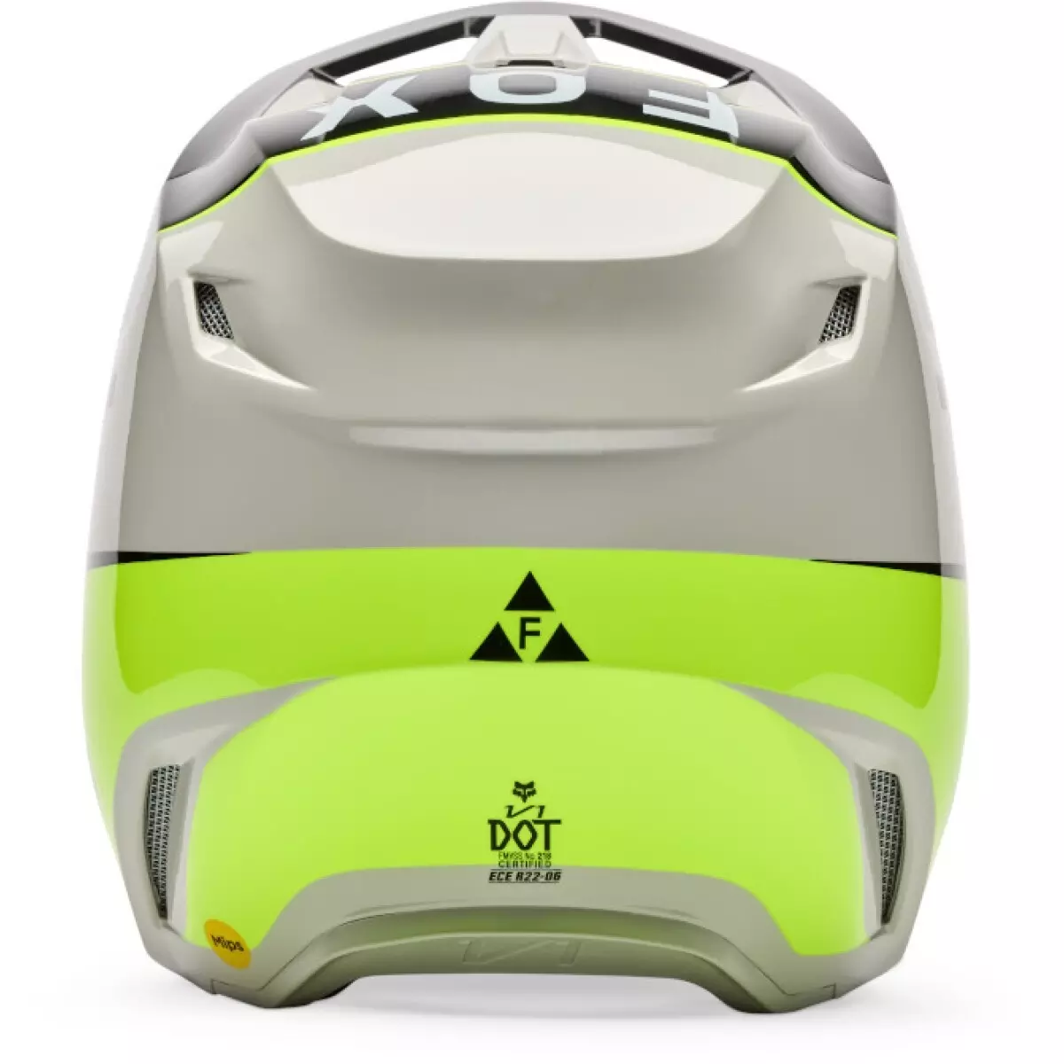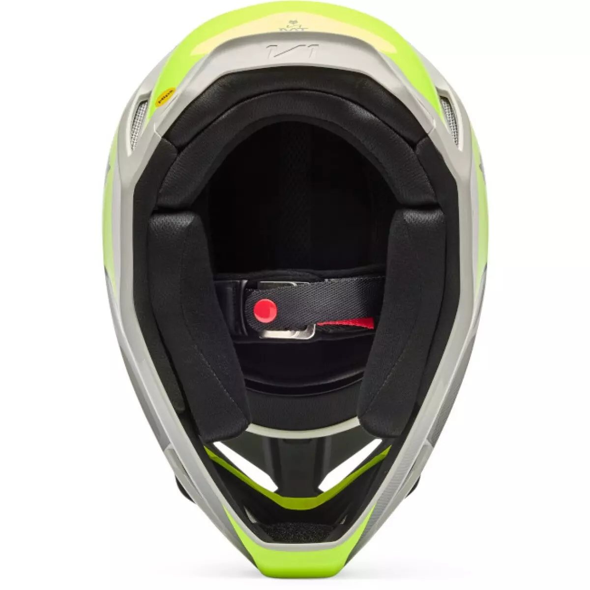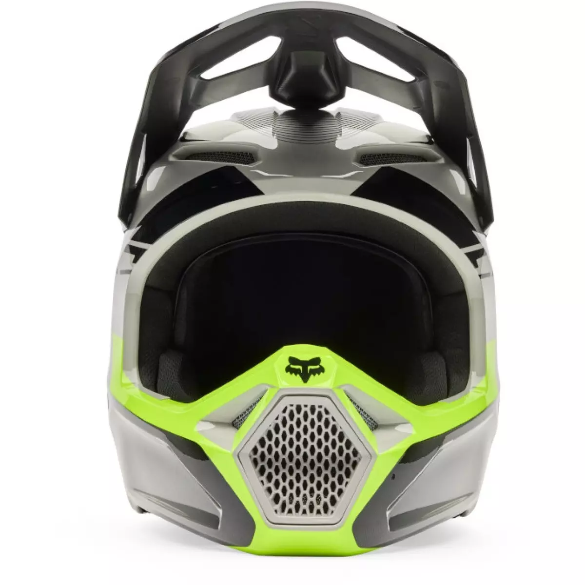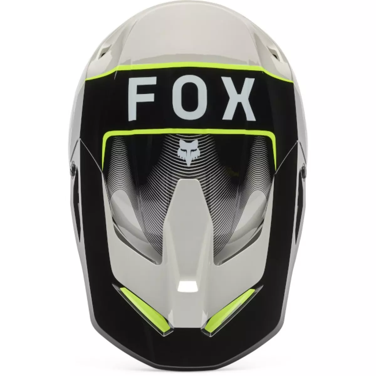 Fox vous présente son casque cross, le V1 Collect en coloris gris et jaune.