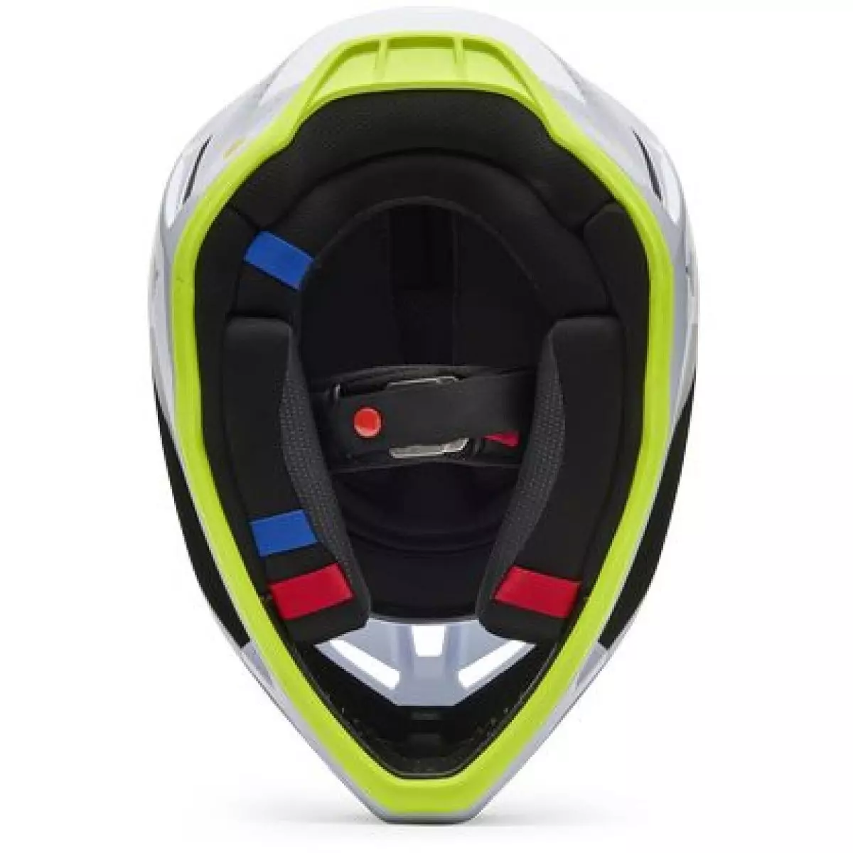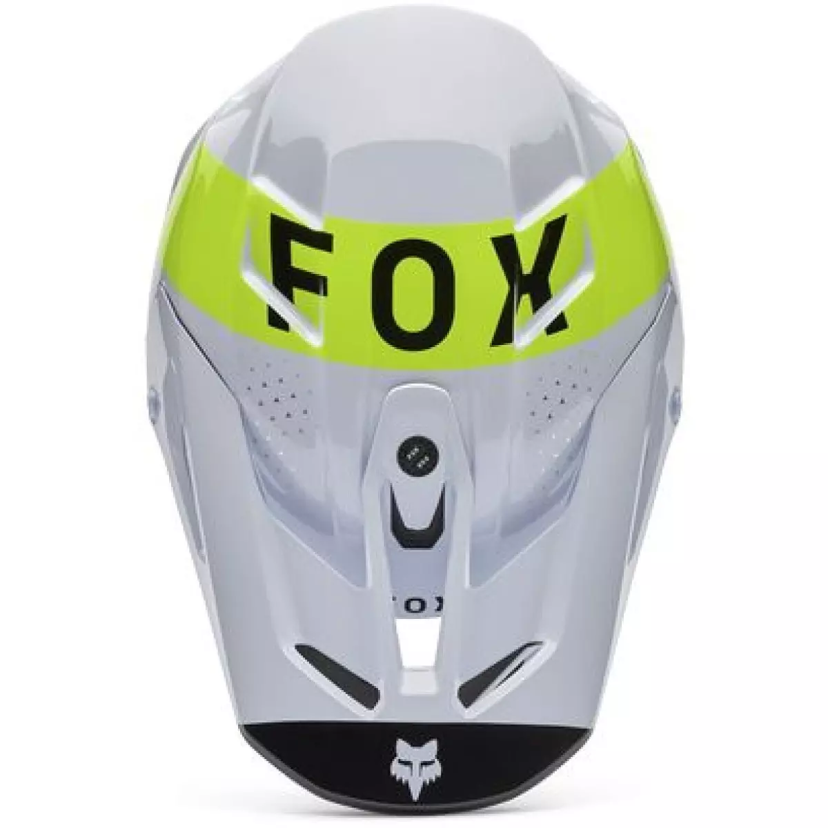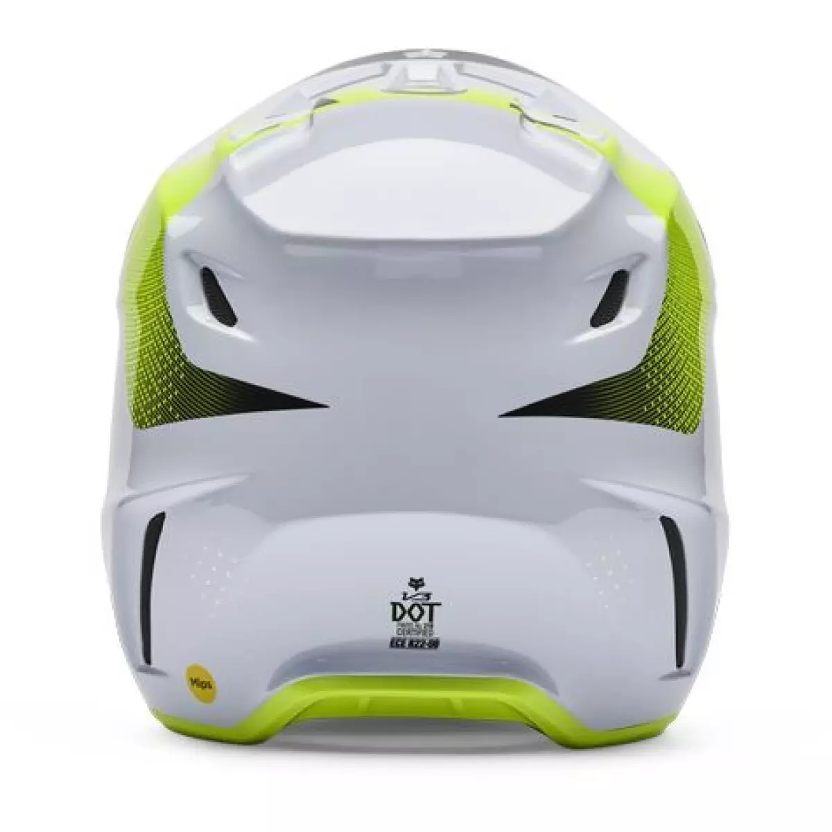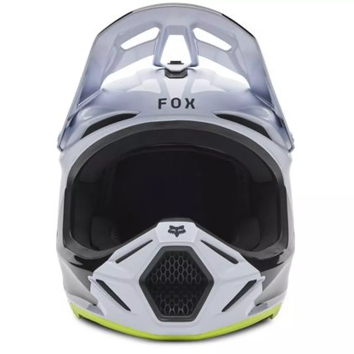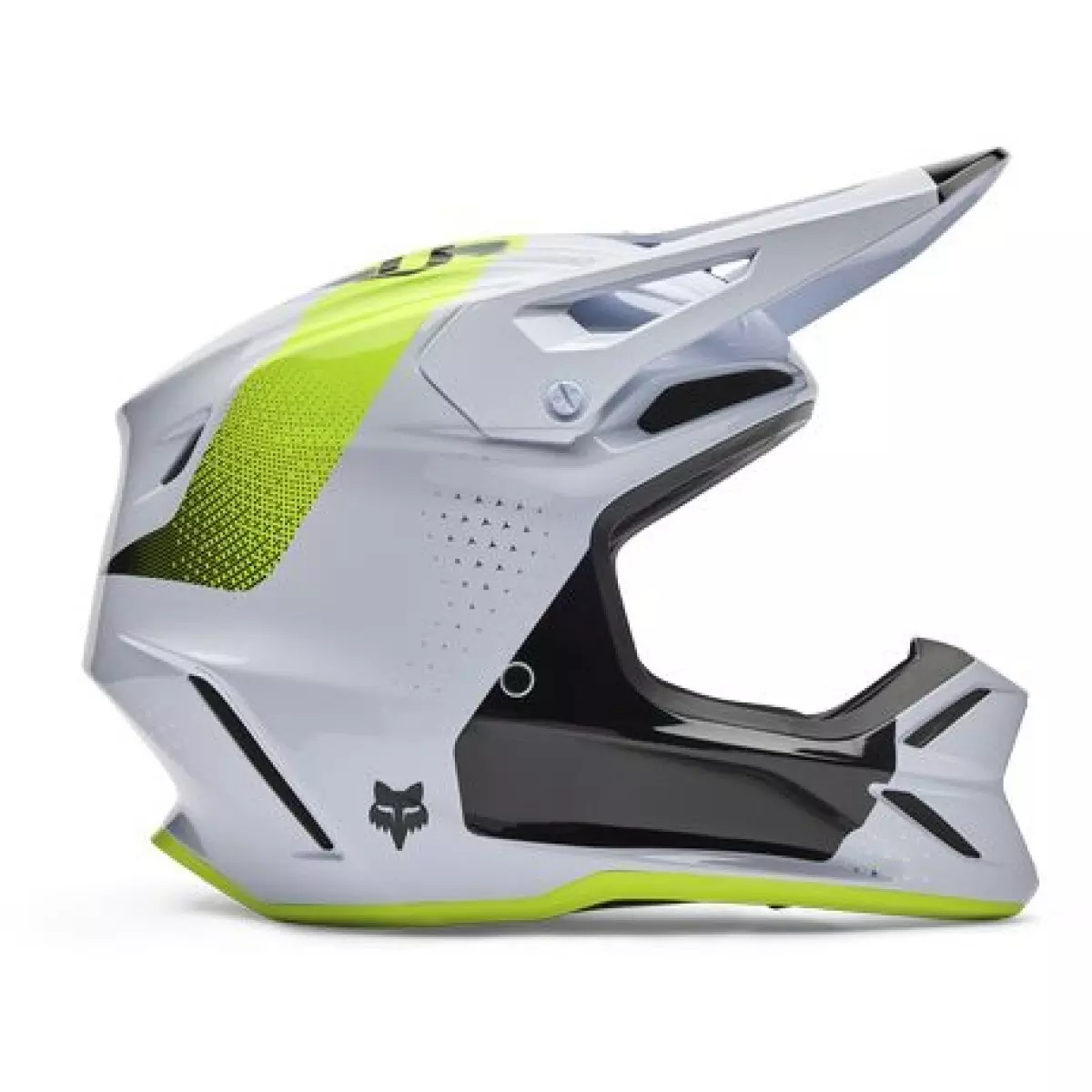 Fox vous présente son casque cross, le V3 Tine en coloris blanc et vert.