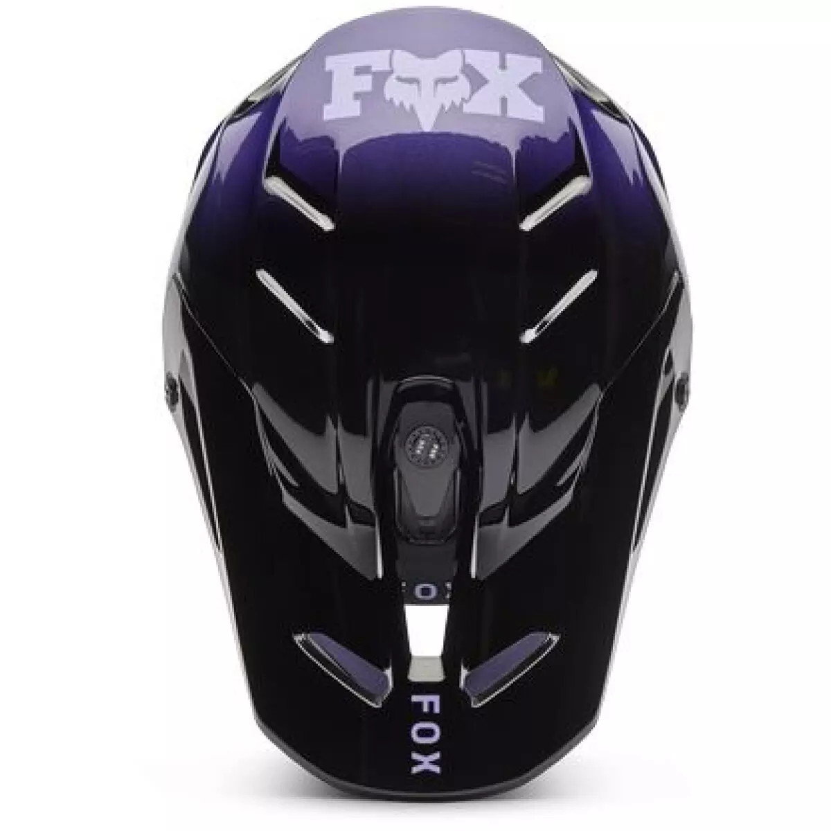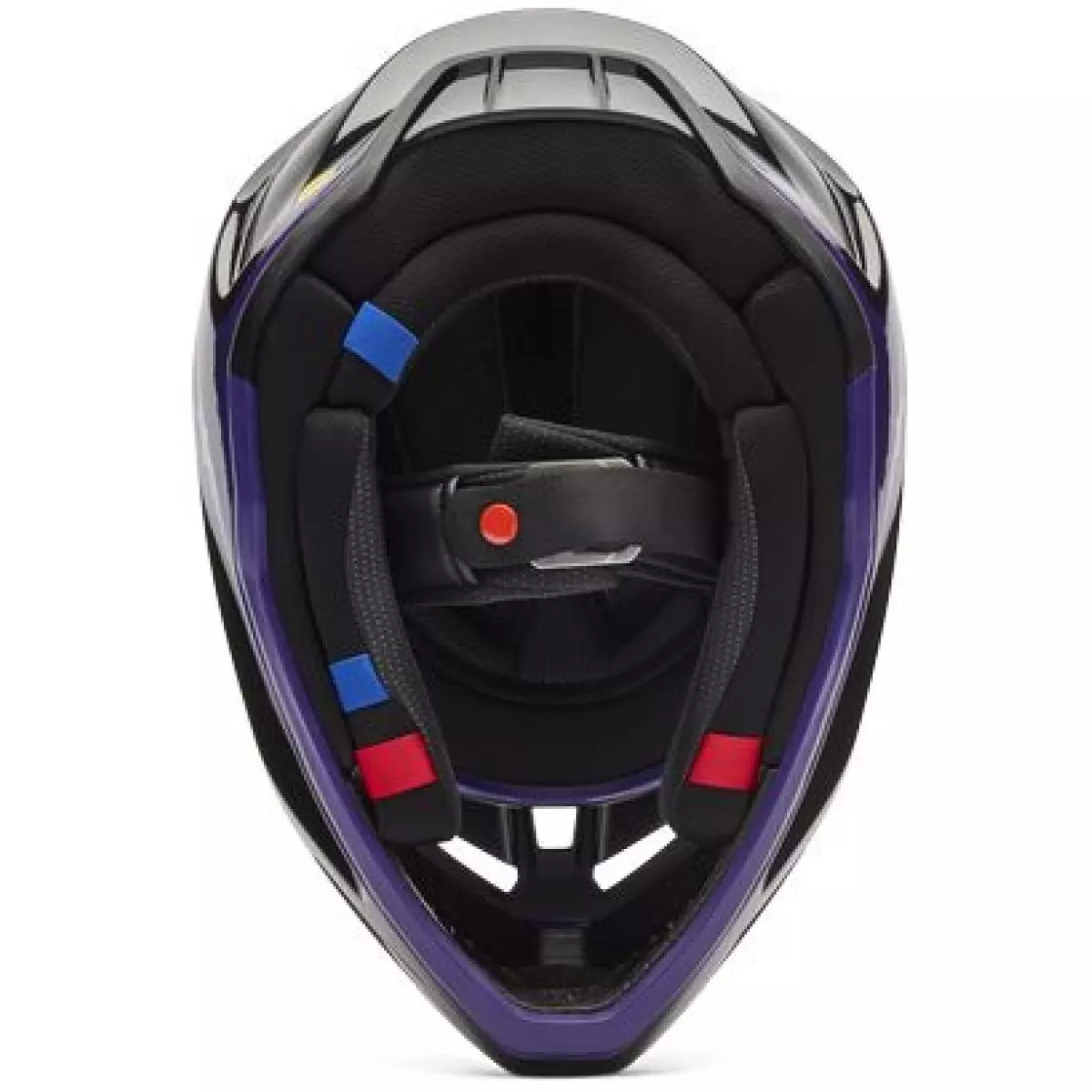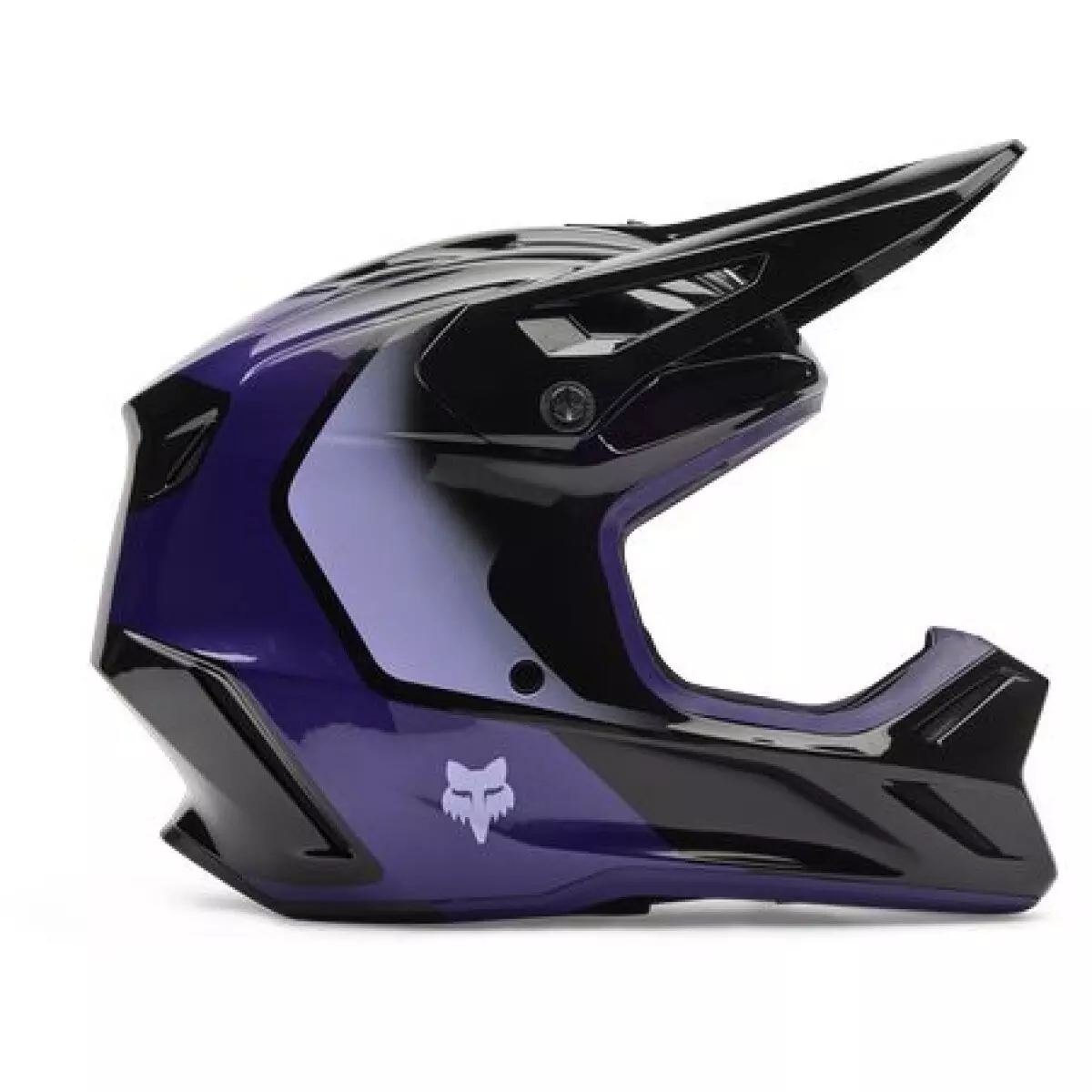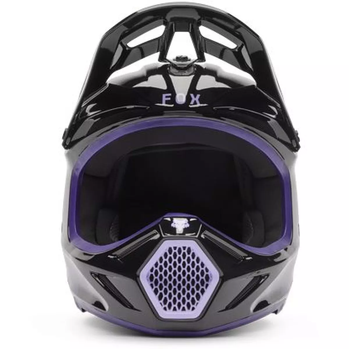 Fox vous présente son casque cross enfant, le V3 Spire en coloris noir et violet.