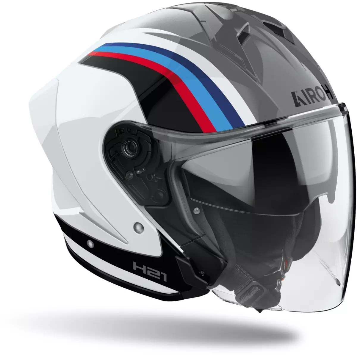 Airoh vous présente son casque jet, le H.21 en coloris gris, noir et blanc brillant.