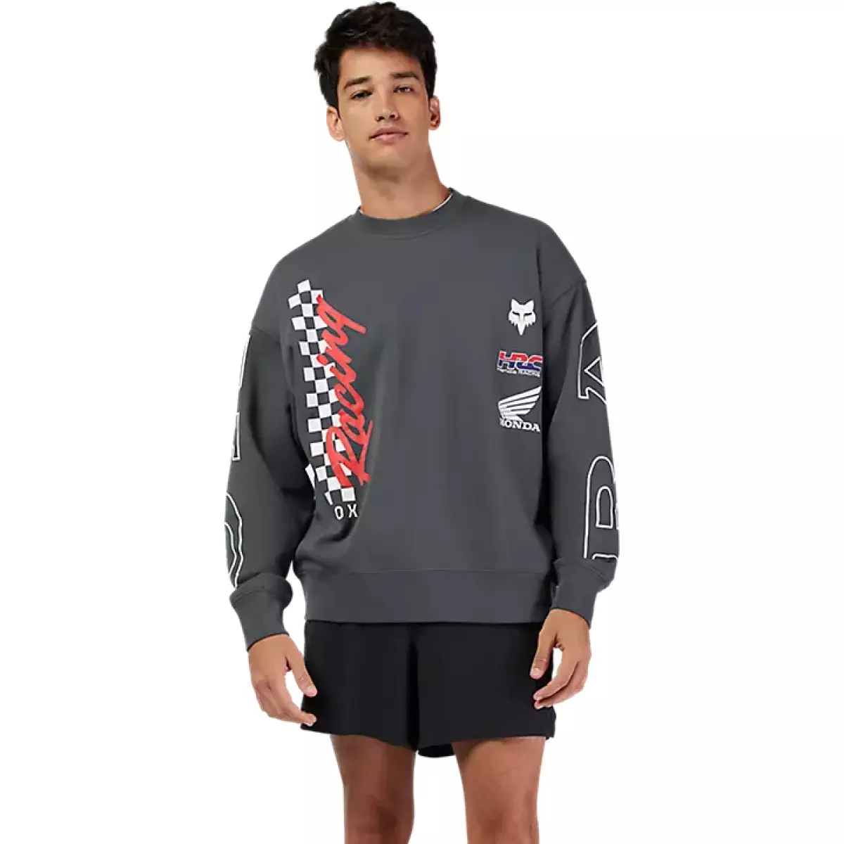 Sweat Fox Oversized Crew Honda Gris Ombre Foncé