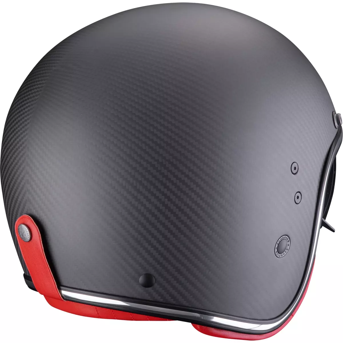 Scorpion vous présente son casque demi-jet pour adulte, le Belfast Evo Carbon en coloris noir et rouge mat.