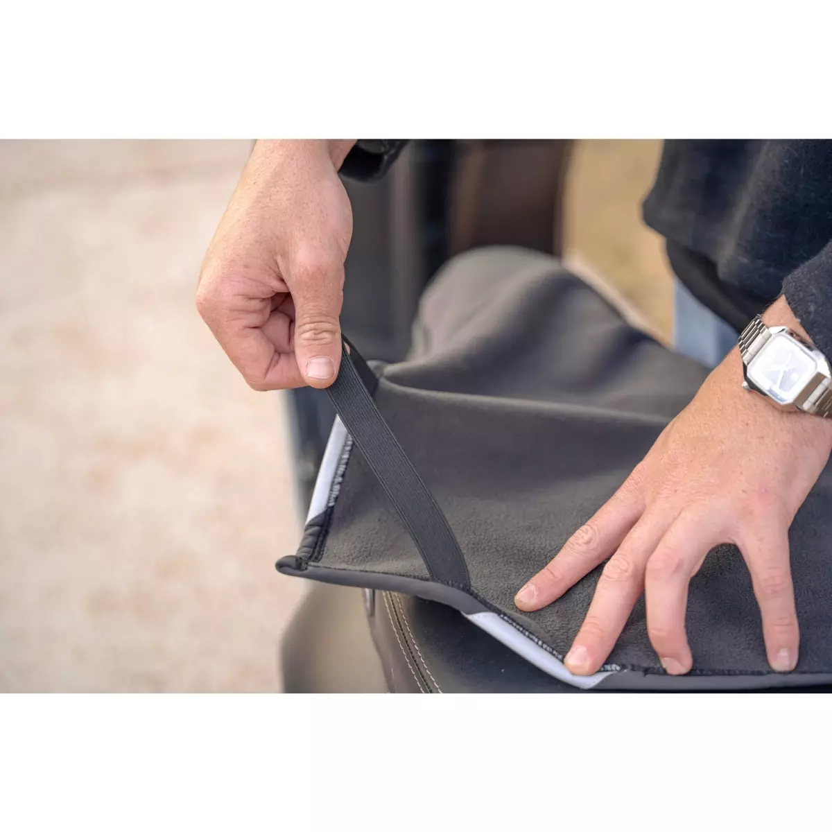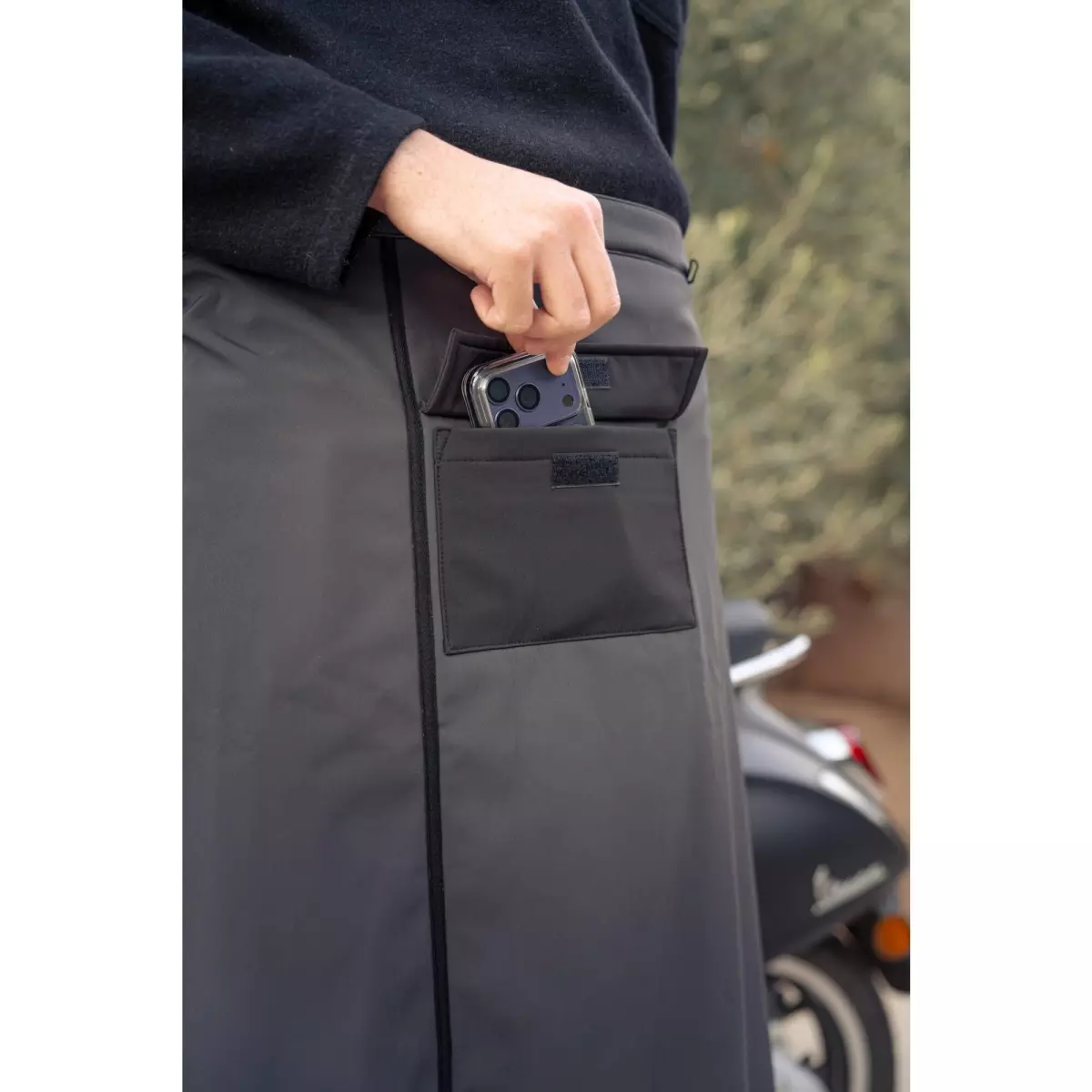 Facile à transporter, il se range sous la selle ou dans un top-case, et s’enfile en quelques secondes grâce à sa ceinture ajustable à la taille. Étanche, chaud et respirant, il assure une protection optimale tout en laissant une liberté totale de mouvement.
