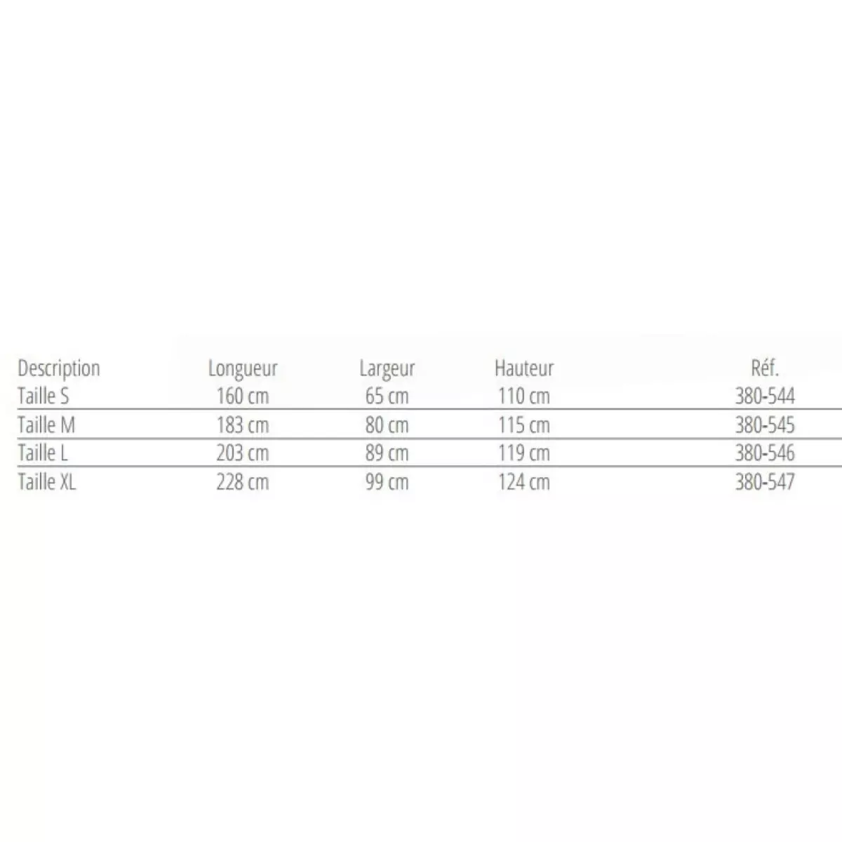 - Dimensions (L x l x P, en cm) : 160 x 65 x 110