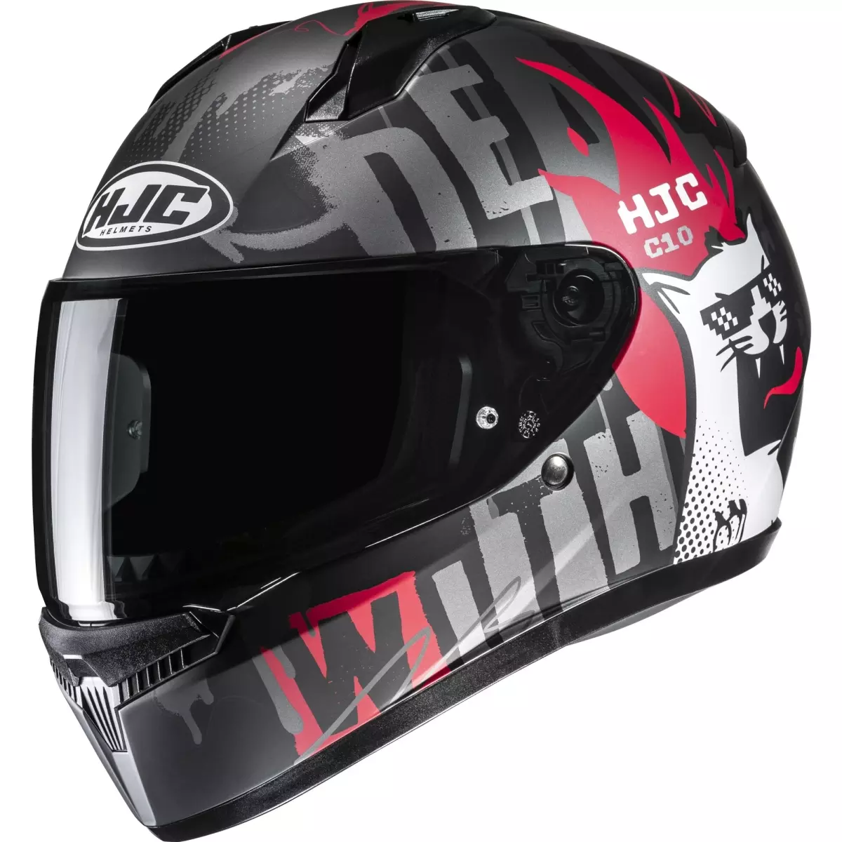 HJC vous présente son casque intégral, le C10 Fop en coloris gris, noir et rouge mat.