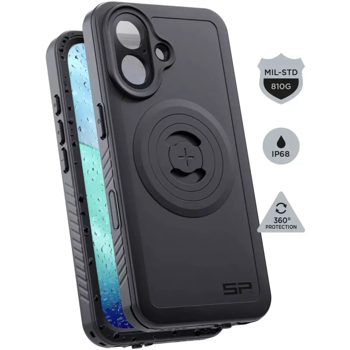 Cette coque protègera efficacement votre téléphone contre les chocs, la poussière, la boue et la pluie. Son système de fixation SPC+ simple et rapide vous permet de la fixer sur un support compatible d'un simple geste. Enfin, elle est équipée d'un anneau magnétique MagSafe® pour recharger rapidement votre téléphone.