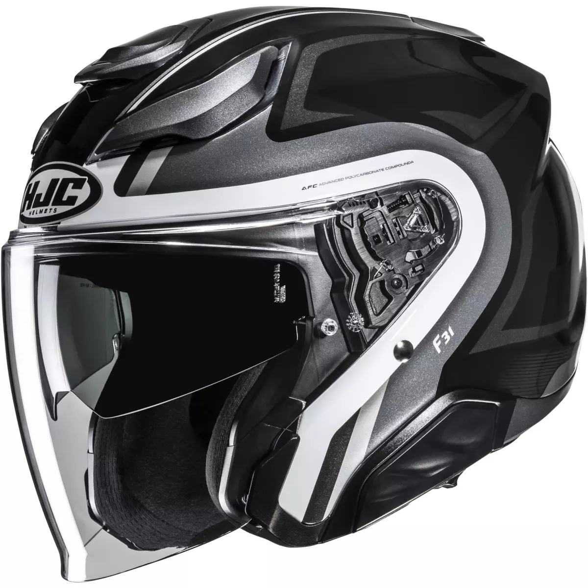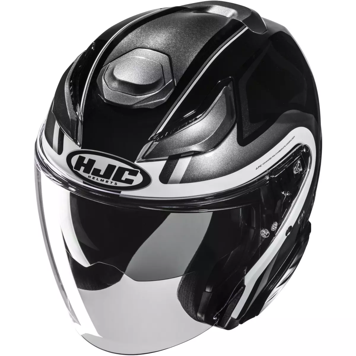 HJC vous présente son casque jet, le F31 Bask MC5 en coloris noir, gris et blanc brillant.