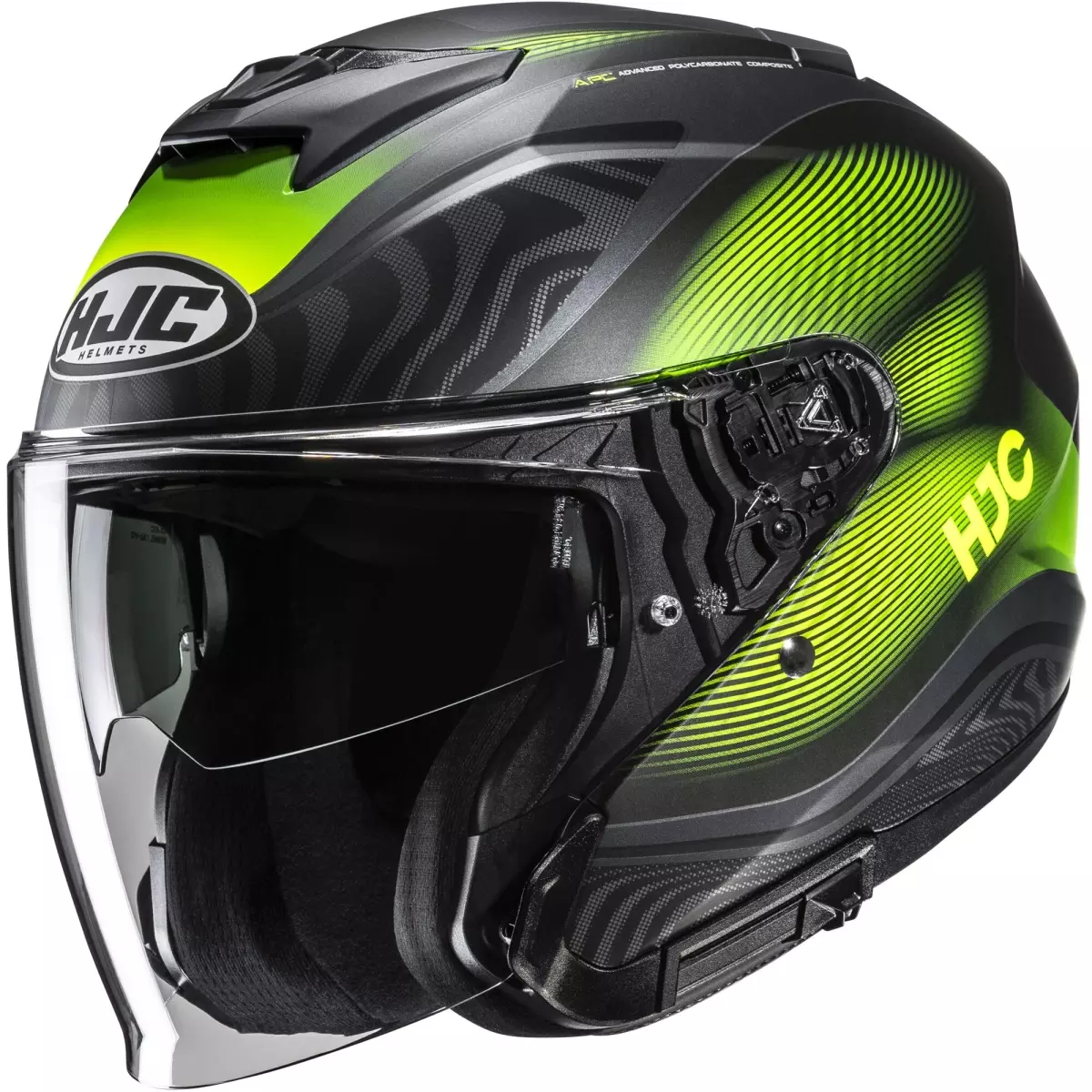 HJC vous présente son casque jet, le I31 Depe MC3HSF en coloris noir et vert mat.