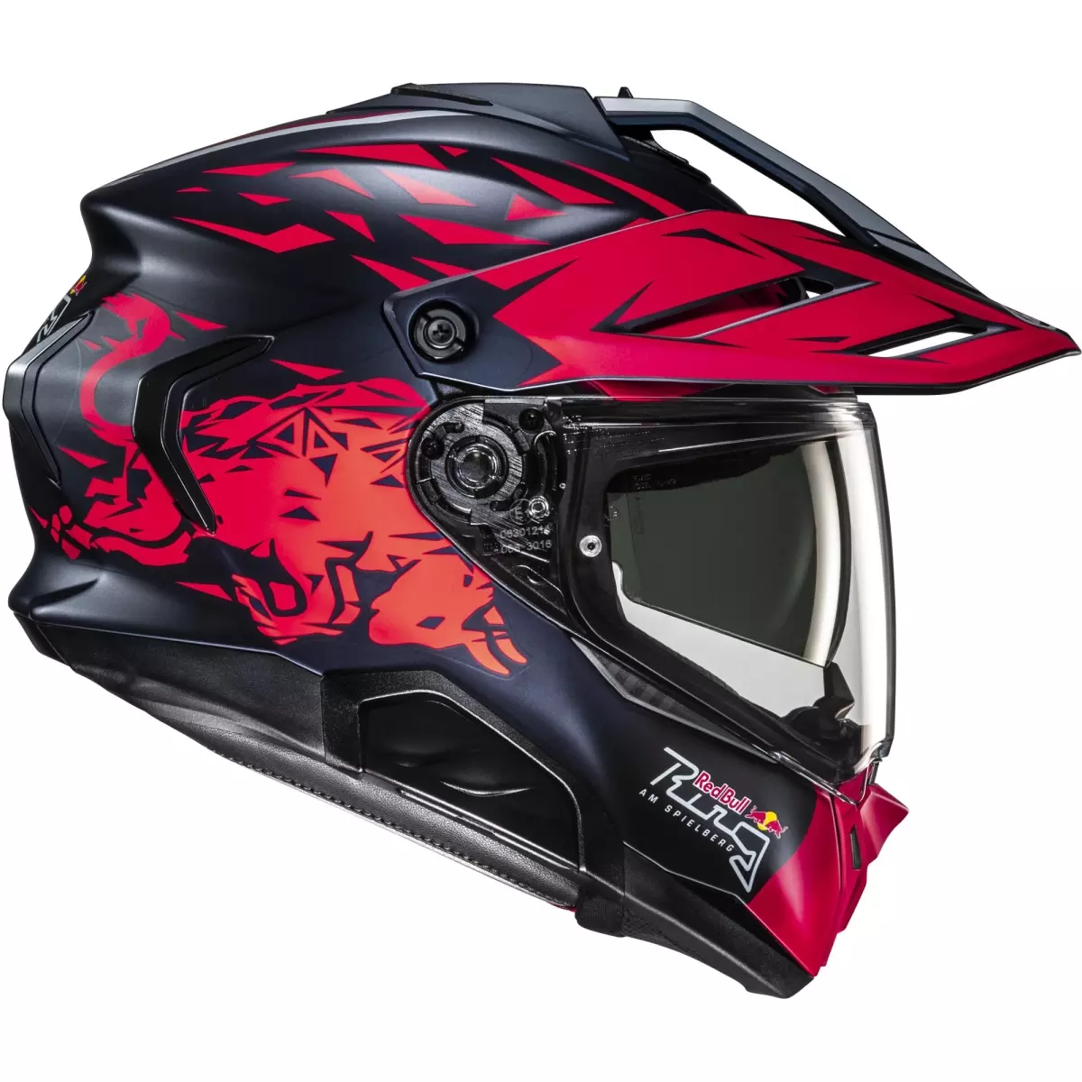 HJC vous présente son casque intégral adventure, le RPHA 60 Spielberg Red Bull MC21SF en coloris rouge et bleu mat.