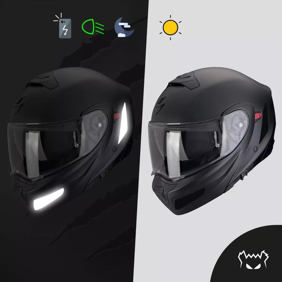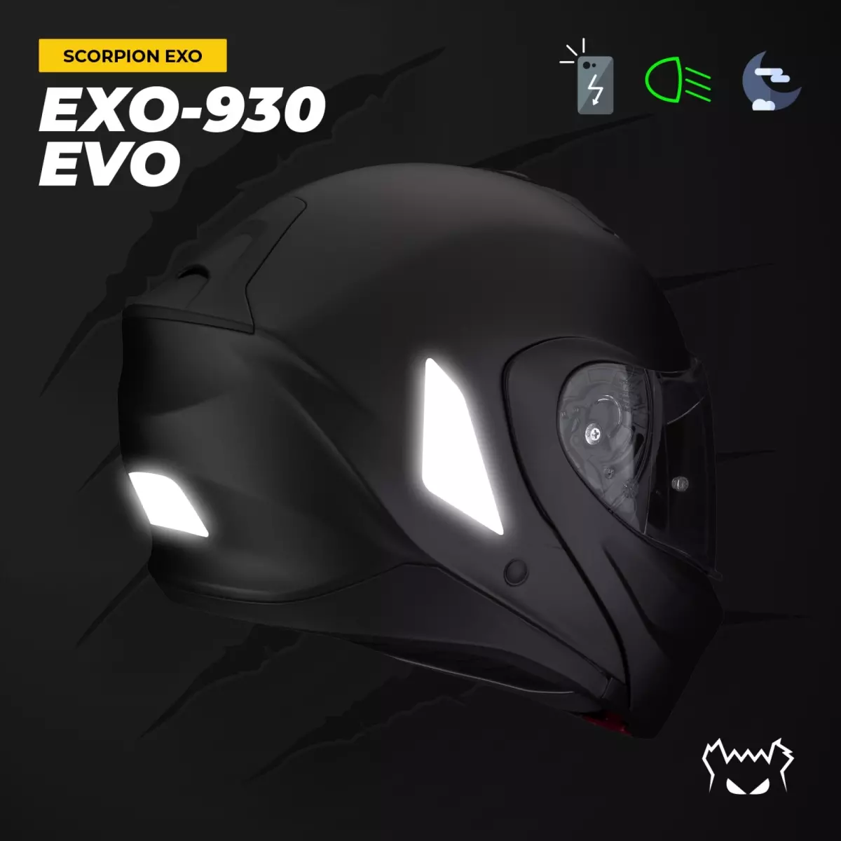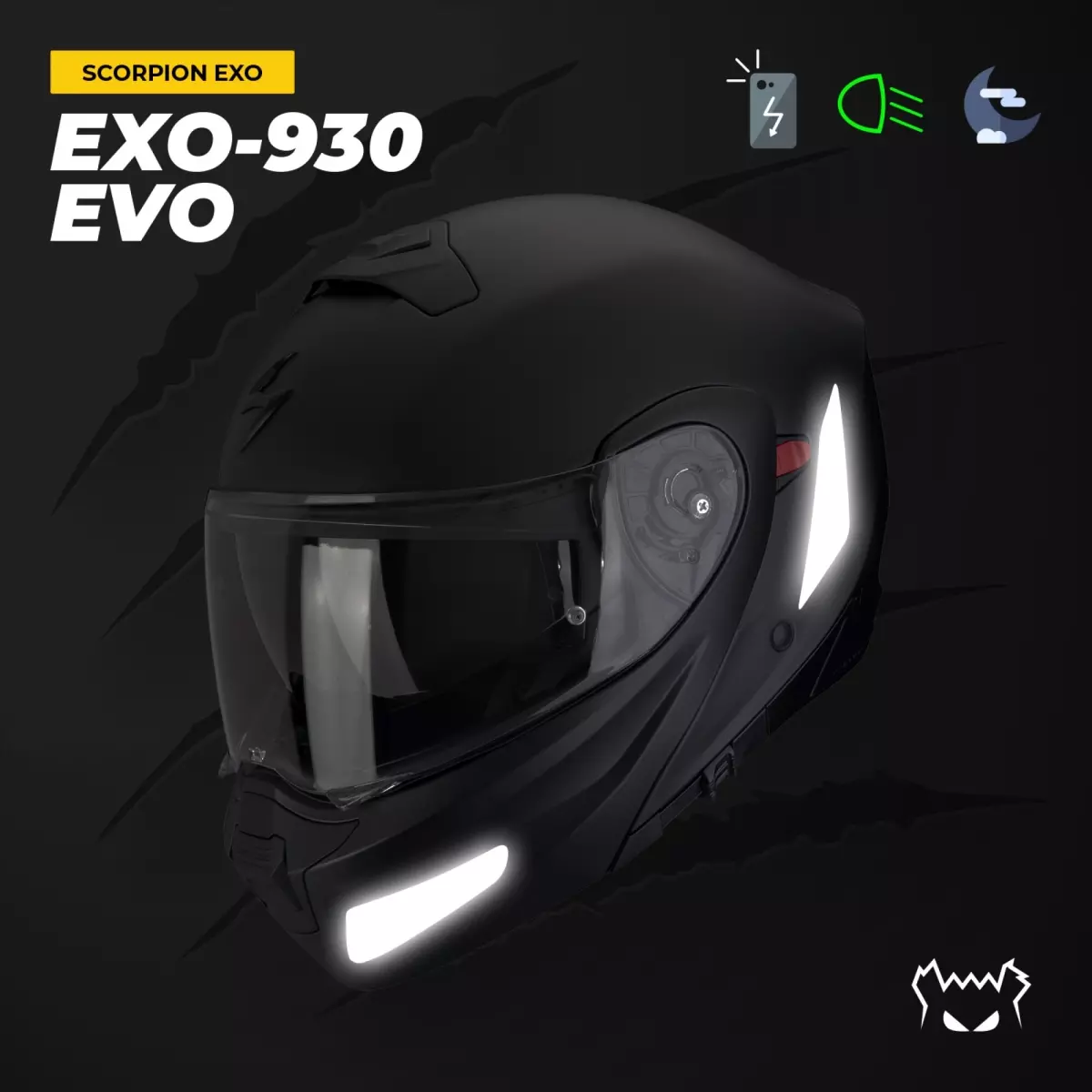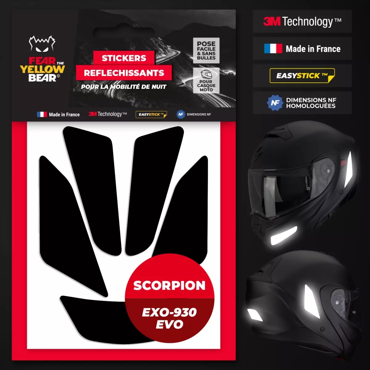 Stickers Réfléchissants Casque Fear The Yellow Bear Scorpion EXO-930 Evo Noir