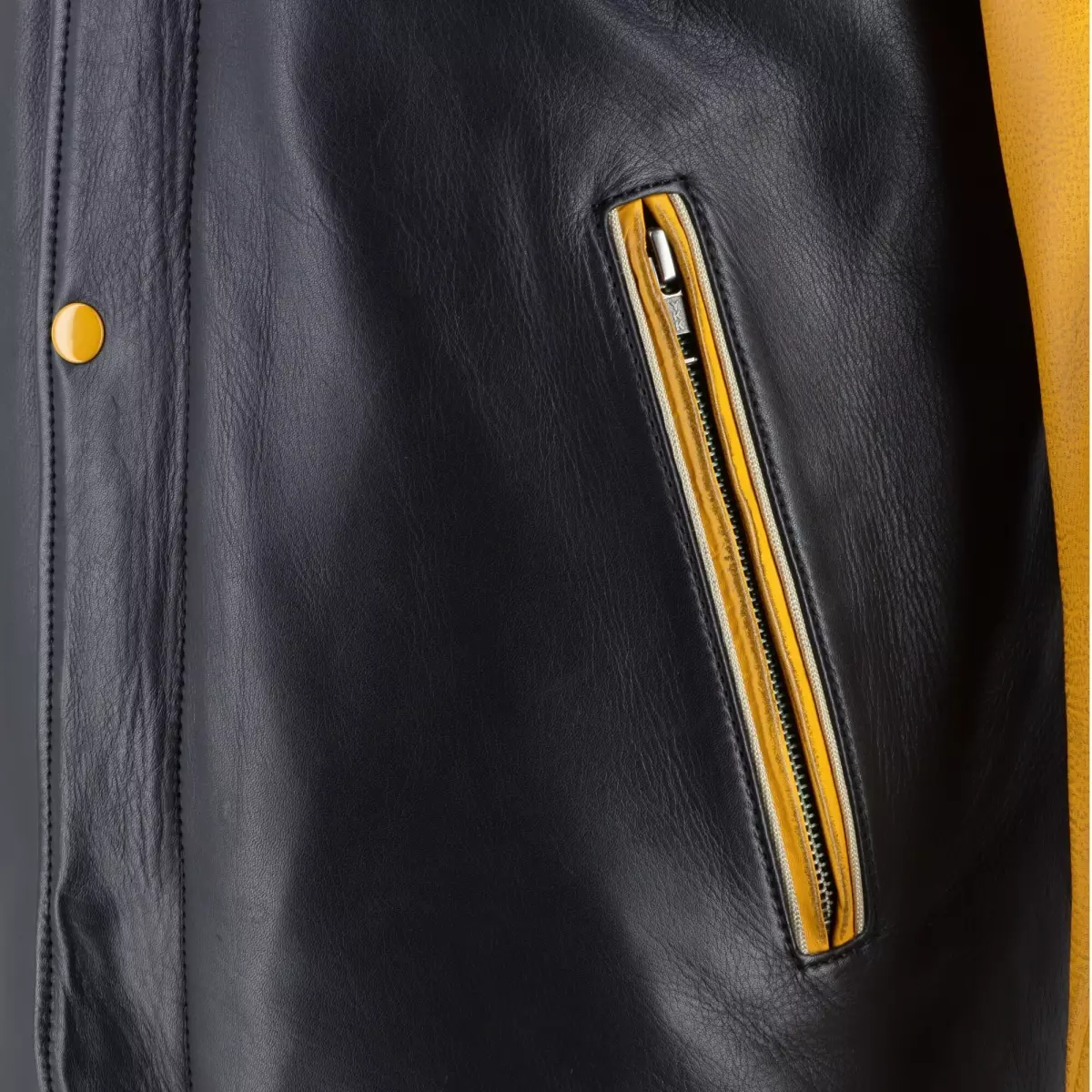 Helstons vous présente en collaboration avec Von Dutch, son blouson, le Brooklyn Wash en coloris noir et jaune.