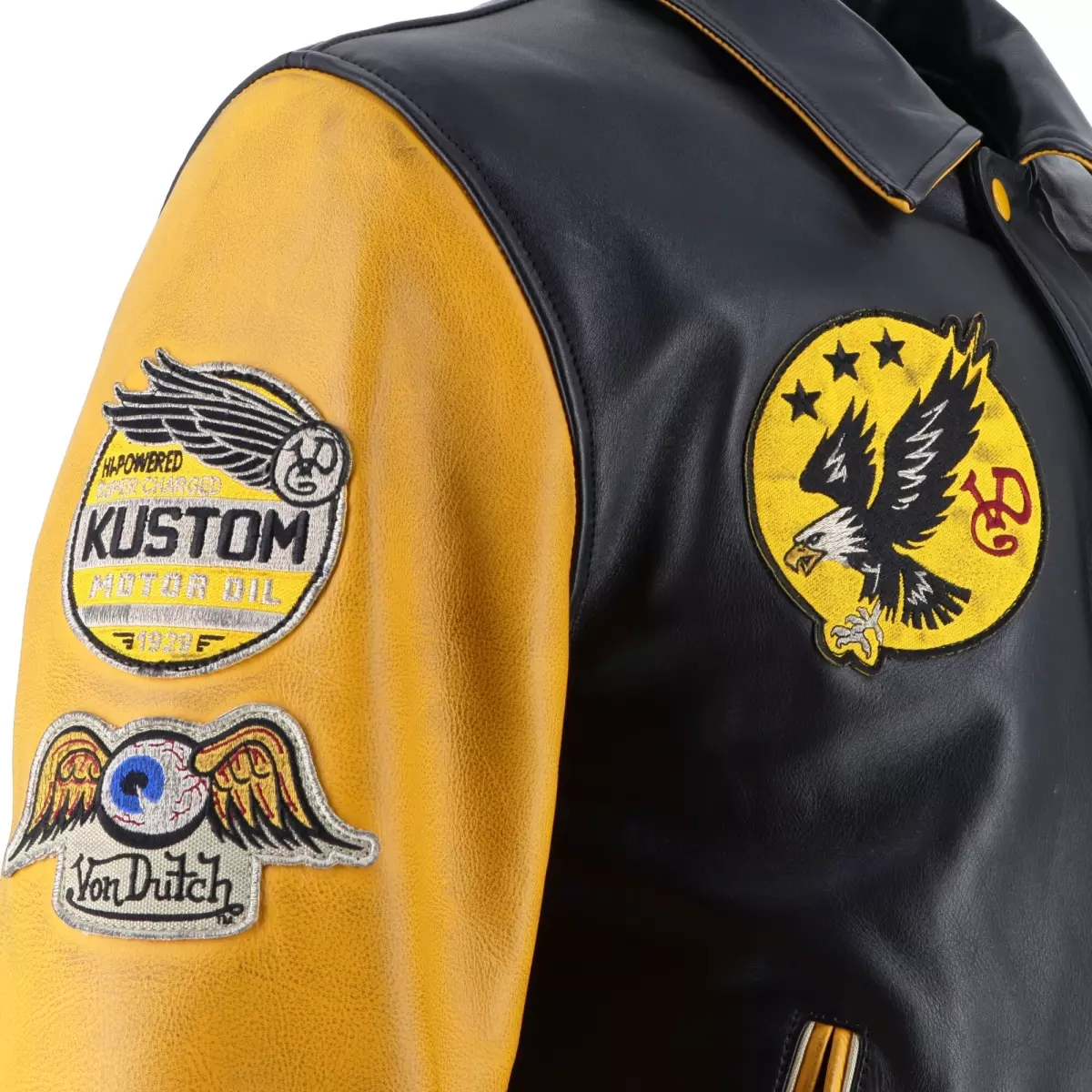 Blouson Helstons Von Dutch Brooklyn Wash Noir Jaune