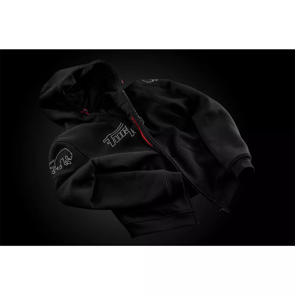 Le Livio X Kevlar® de FURYGAN combine style urbain et protection moto. Derrière son allure de sweat à capuche décontracté se cache un véritable équipement de sécurité. Conçu par le Furygan MotionLAB, il associe confort, résistance et technologie de pointe grâce à ses renforts en fibres de Kevlar® et ses protections D3O®. Homologué CE niveau AA, il offre une protection fiable sans compromis sur le style.