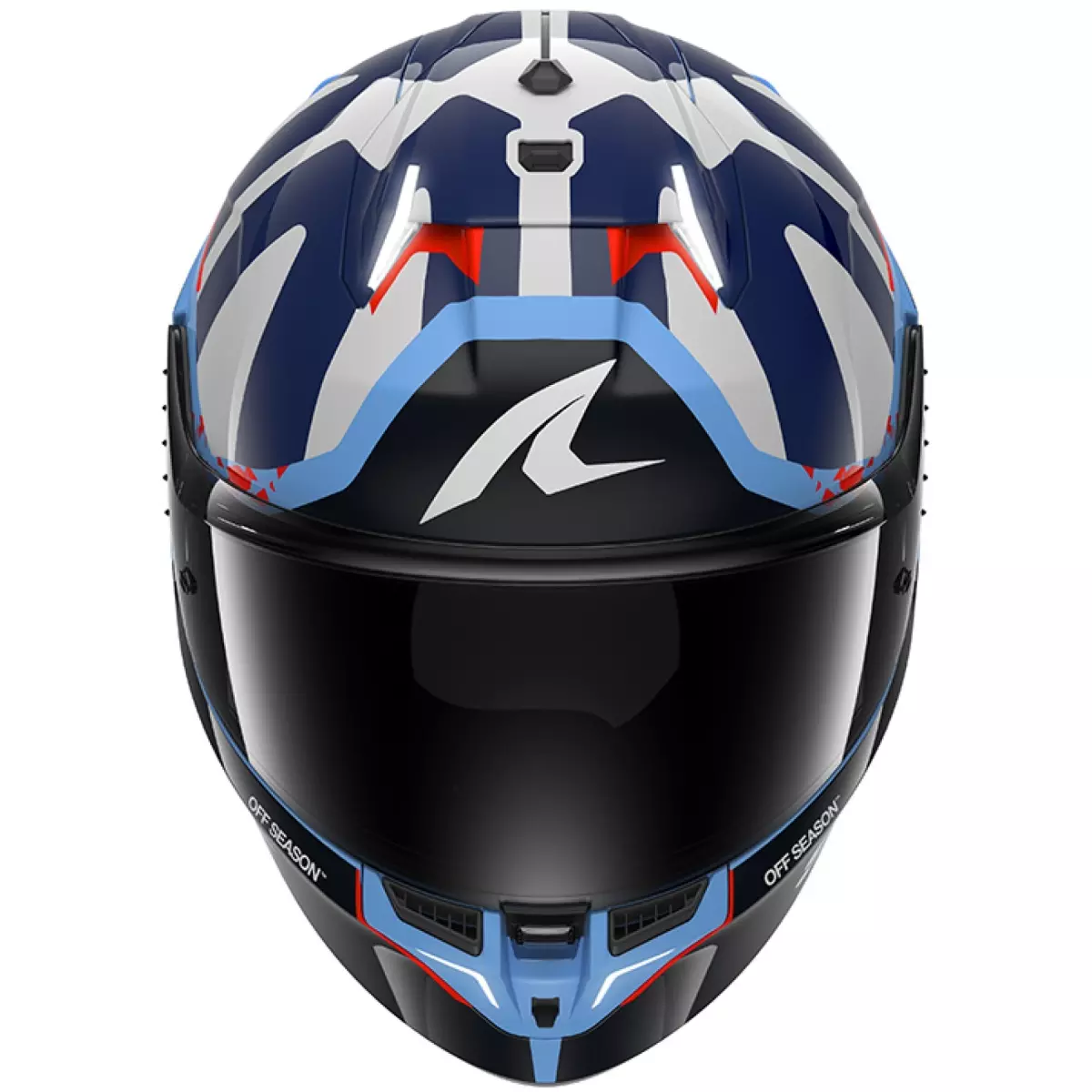 Shark vous présente son casque moto intégral, le Skwal i3 Replica Raul Fernandez en coloris noir, bleu et blanc brillant.