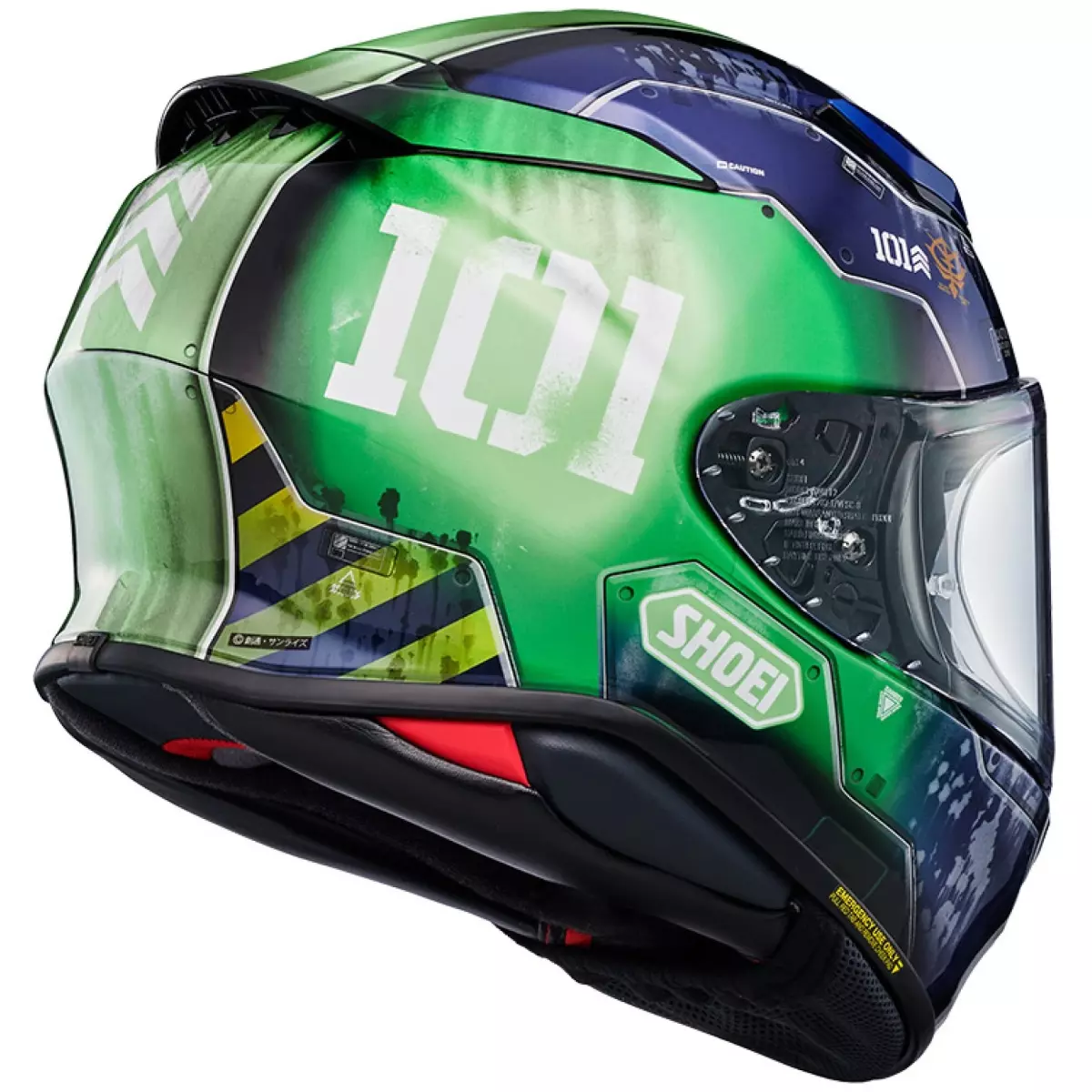 Shoei vous présente son casque intégral, le NXR 2 MS-05 Zaku I TC-11 Vert Bleu