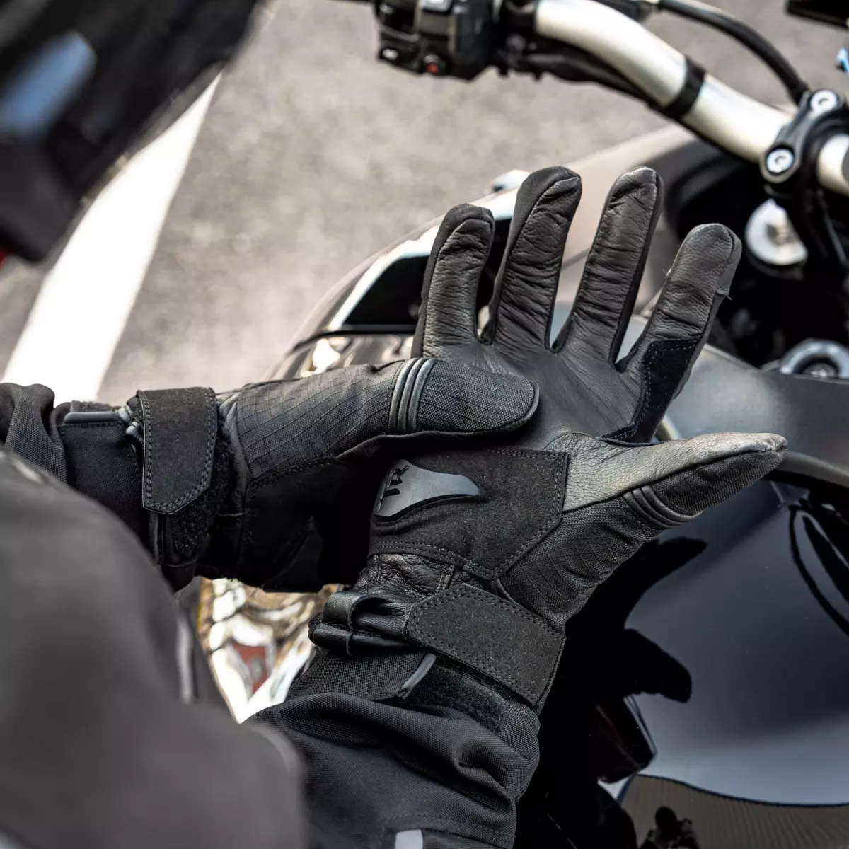 Avec leur look urbain sobre, ces gants de moto homologués sont l'accessoire idéal pour vos trajets quotidiens. Leur conception bi-matière, qui allie un nylon résistant et une paume en cuir, assure un confort et un contrôle excellents. Leur manchette longue est dotée d'un serrage velcro ainsi que d'une membrane étanche pour un enfilage facile. De plus, un empiècement en cuir sur l'index vous permet d'utiliser votre smartphone sans retirer vos gants.