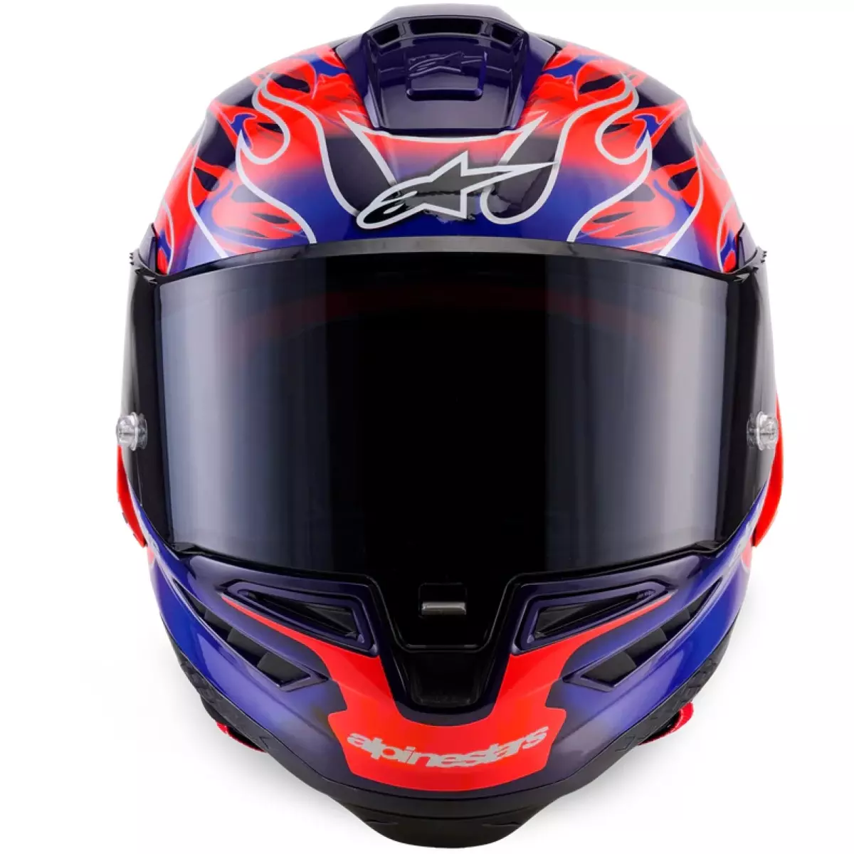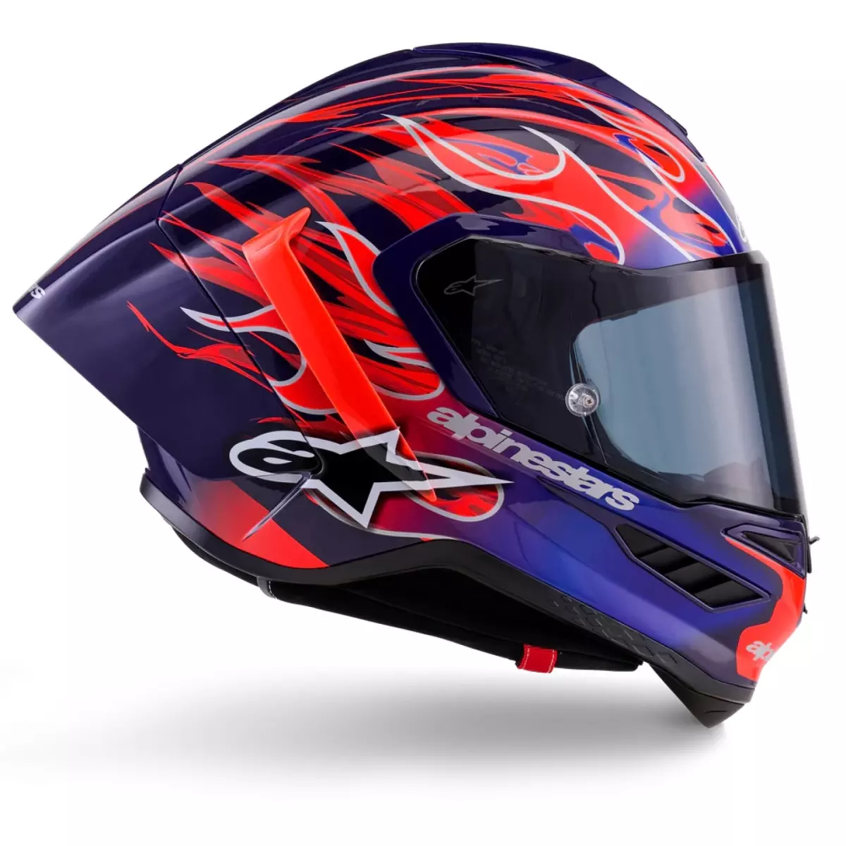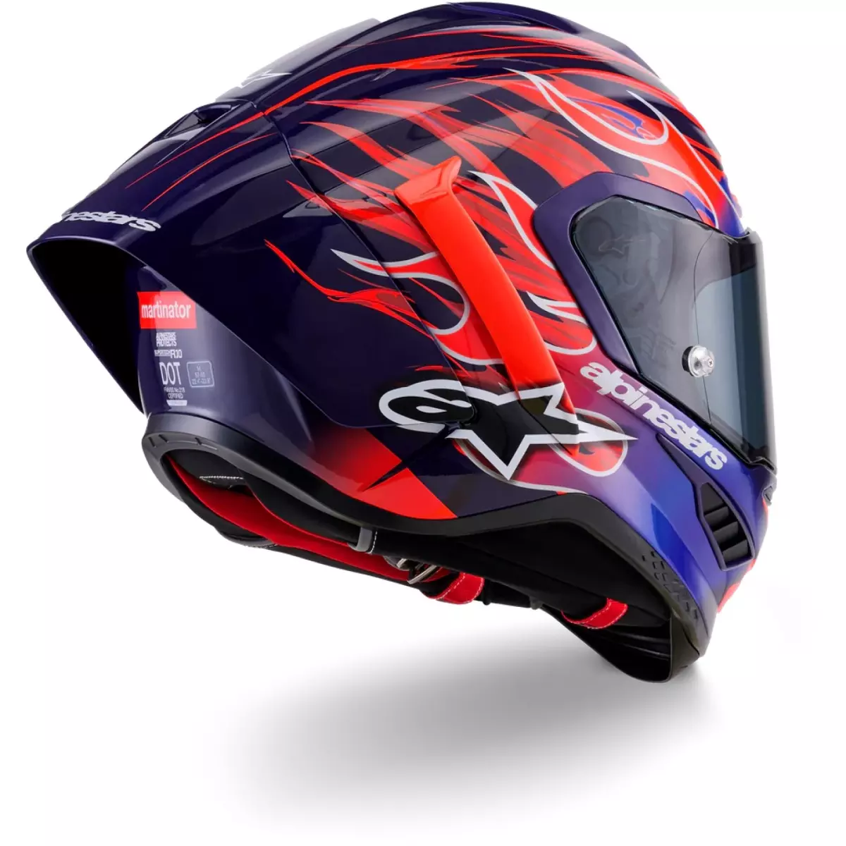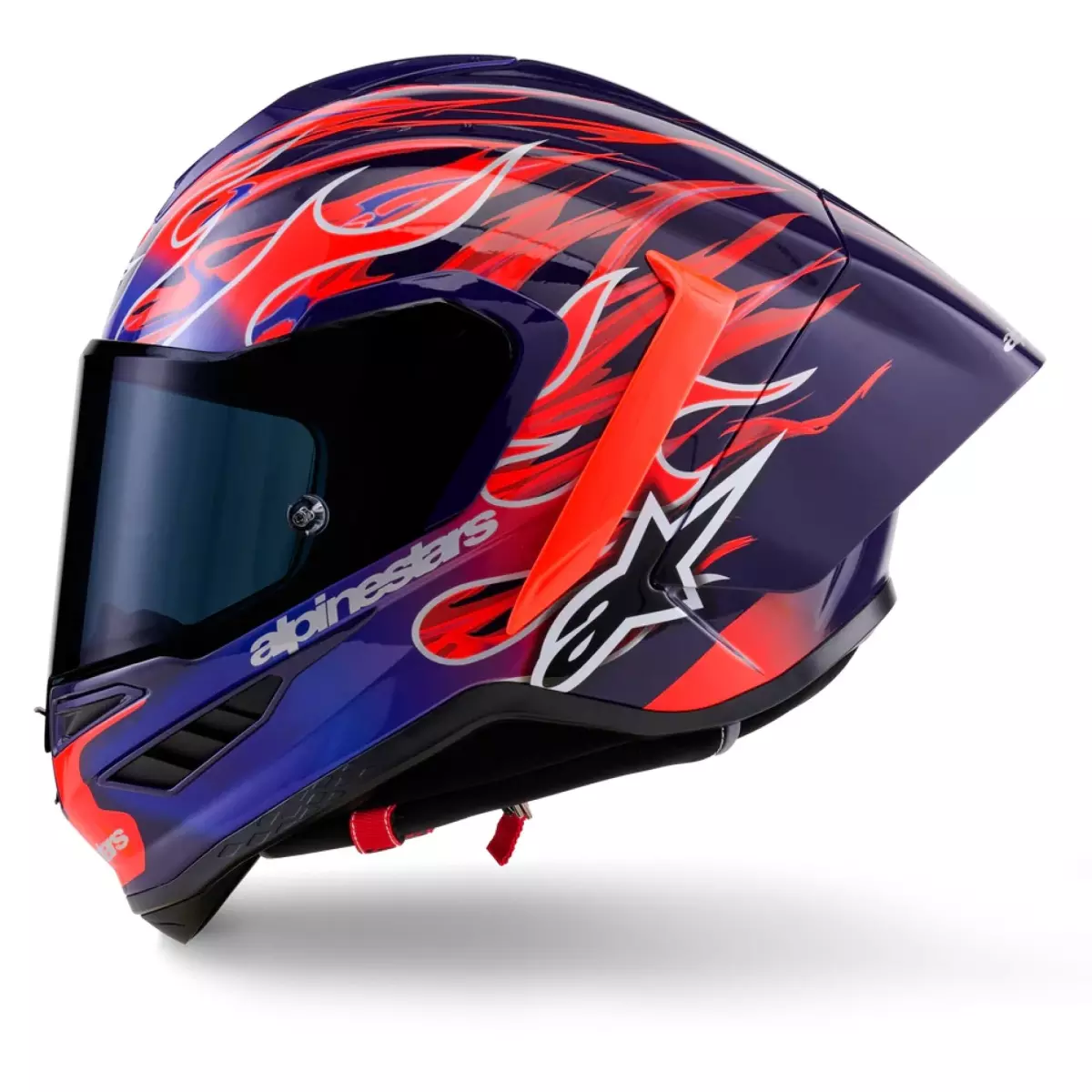 Alpinestars vous présente son casque moto racing, le Supertech R10 LE replica Martin Jorge en coloris violet et rouge.