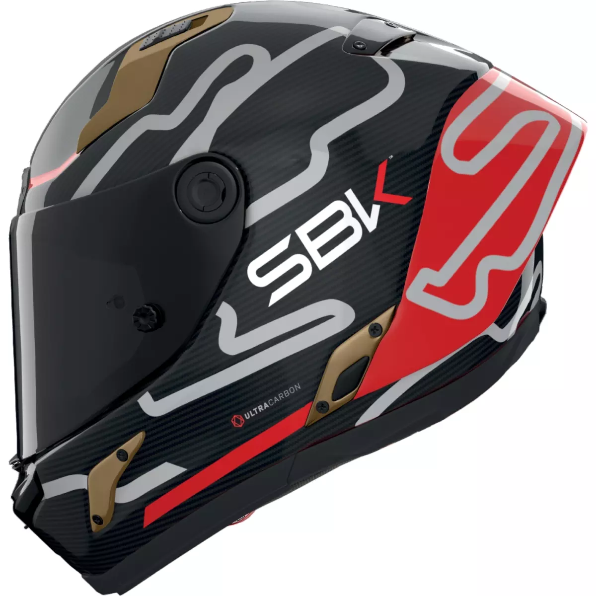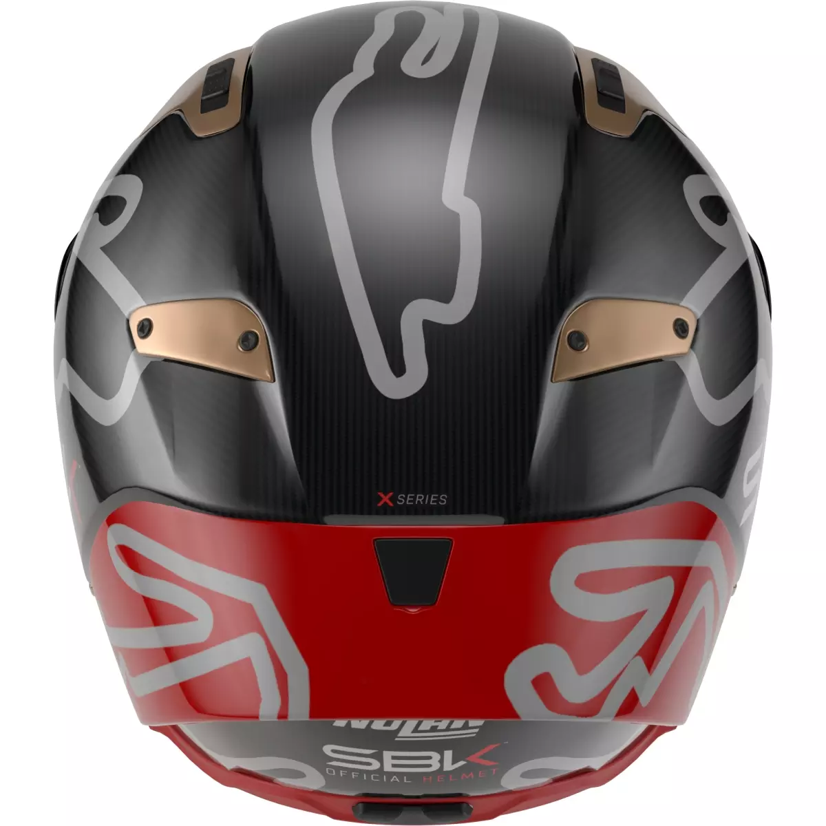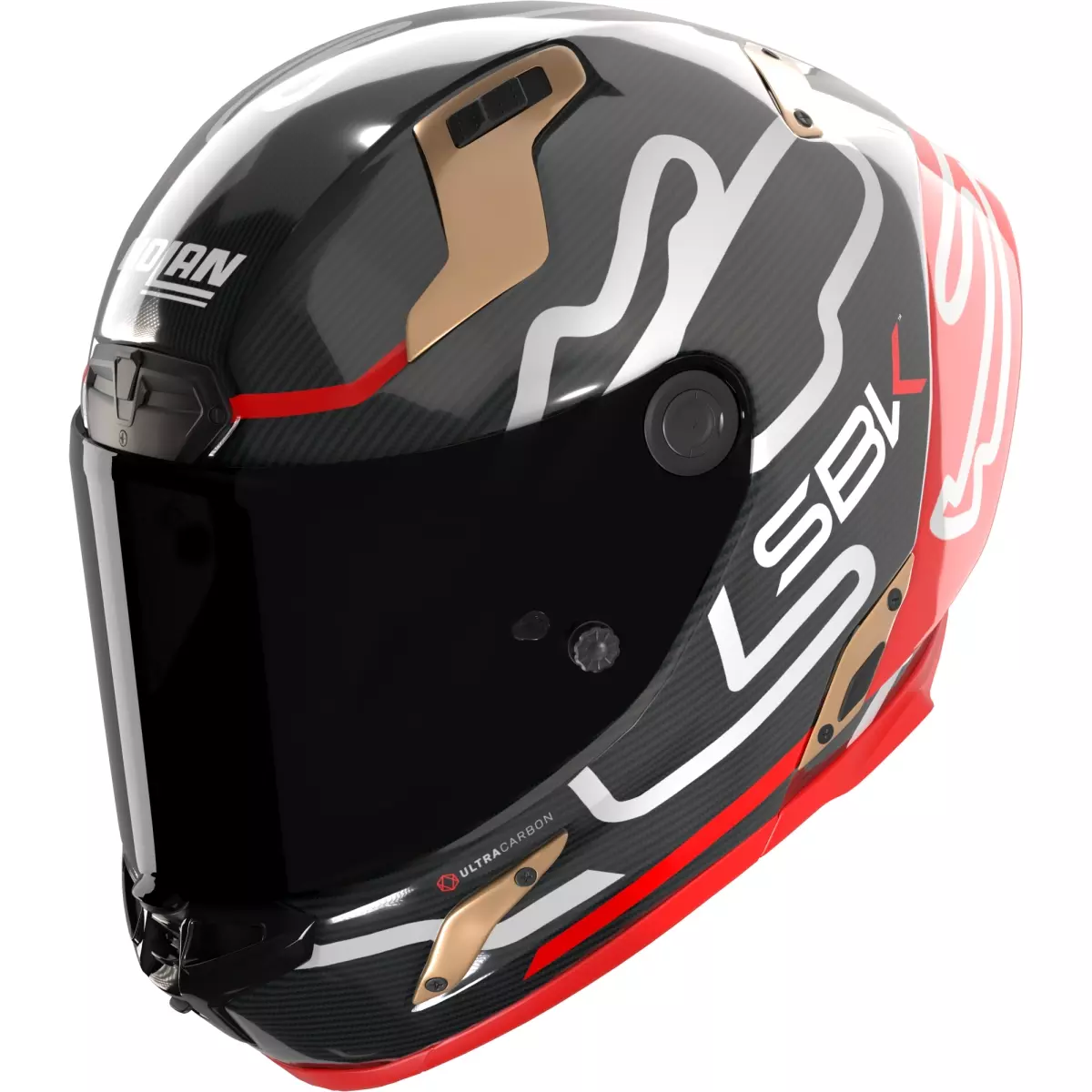 Nolan vous présente son casque intégral, le X-804 RS Ultra Carbon SBK 360 en coloris noir, rouge et or.