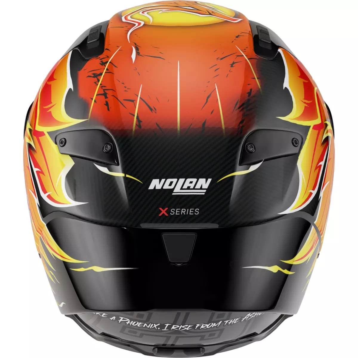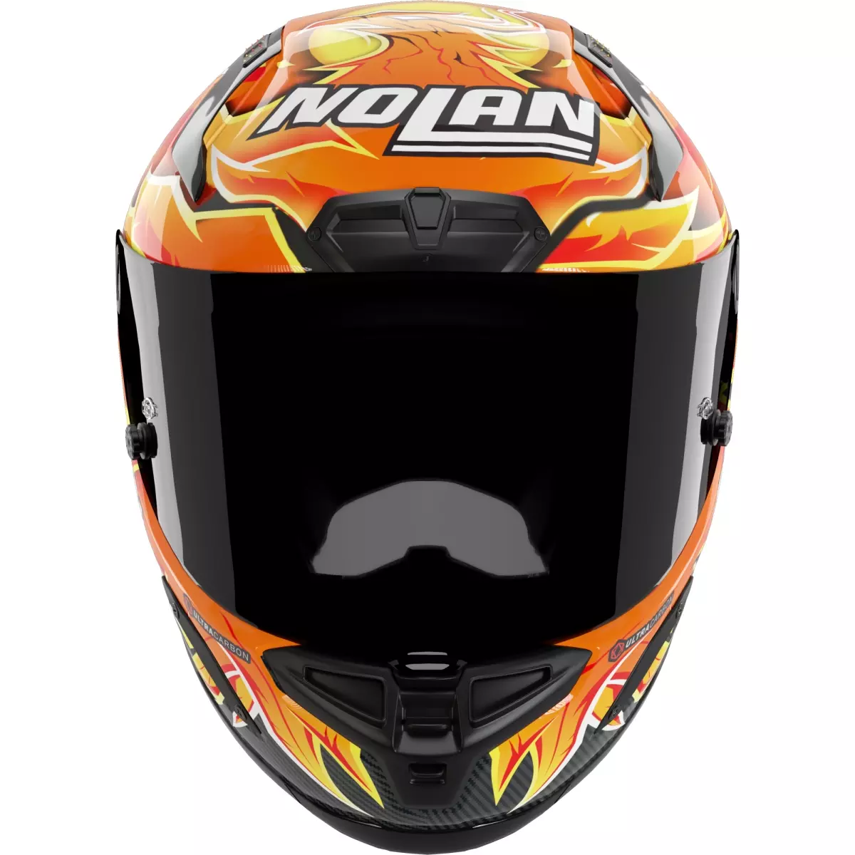 Nolan vous présente son casque intégral, le X-804 RS Ultra Carbon Replica Iannone 368 en coloris noir, jaune et orange.