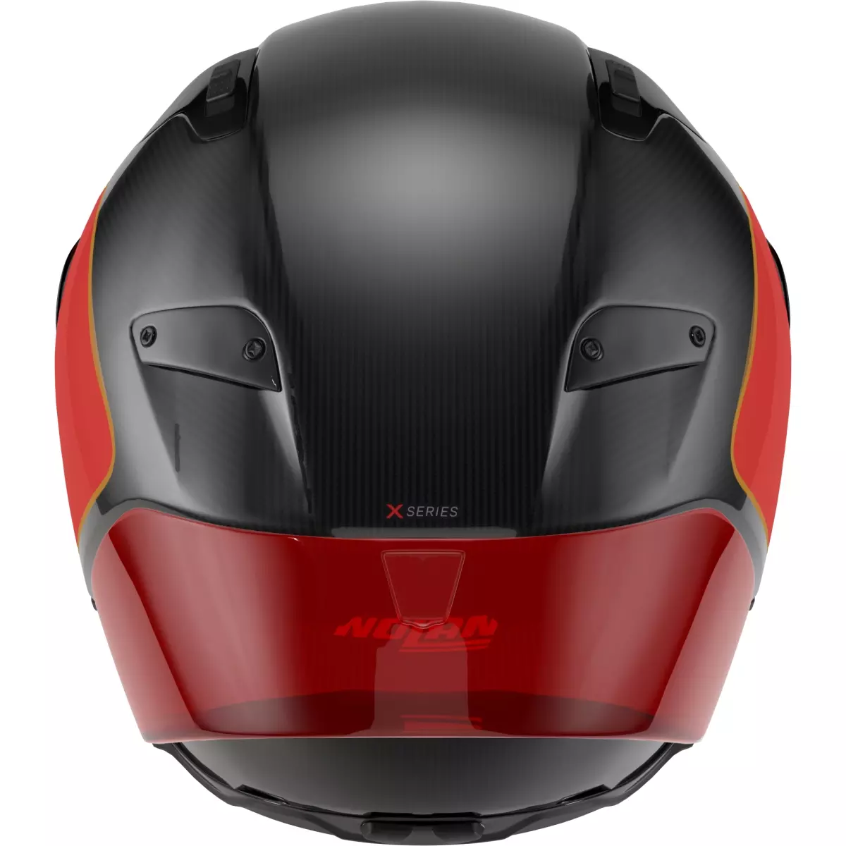 Nolan vous présente son casque intégral, le X-804 RS Ultra Carbon Asso Di Picc 356 en coloris noir et rouge.