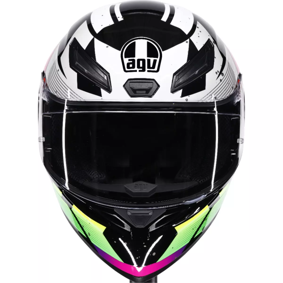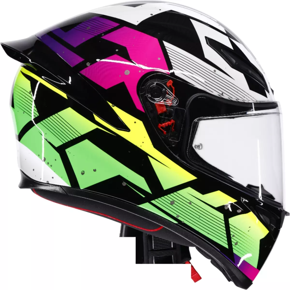 AGV vous présente son casque intégral, le K1 S Punkpulse en coloris noir, rose et vert.