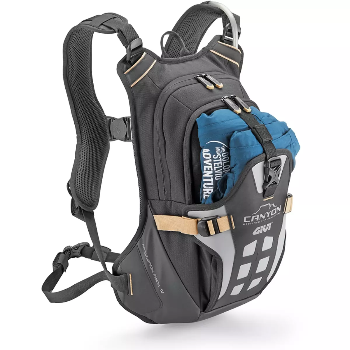 Givi vous présente son sac à dos Canyon 12L, prédisposé à recevoir une poche à eau HydraPak®.