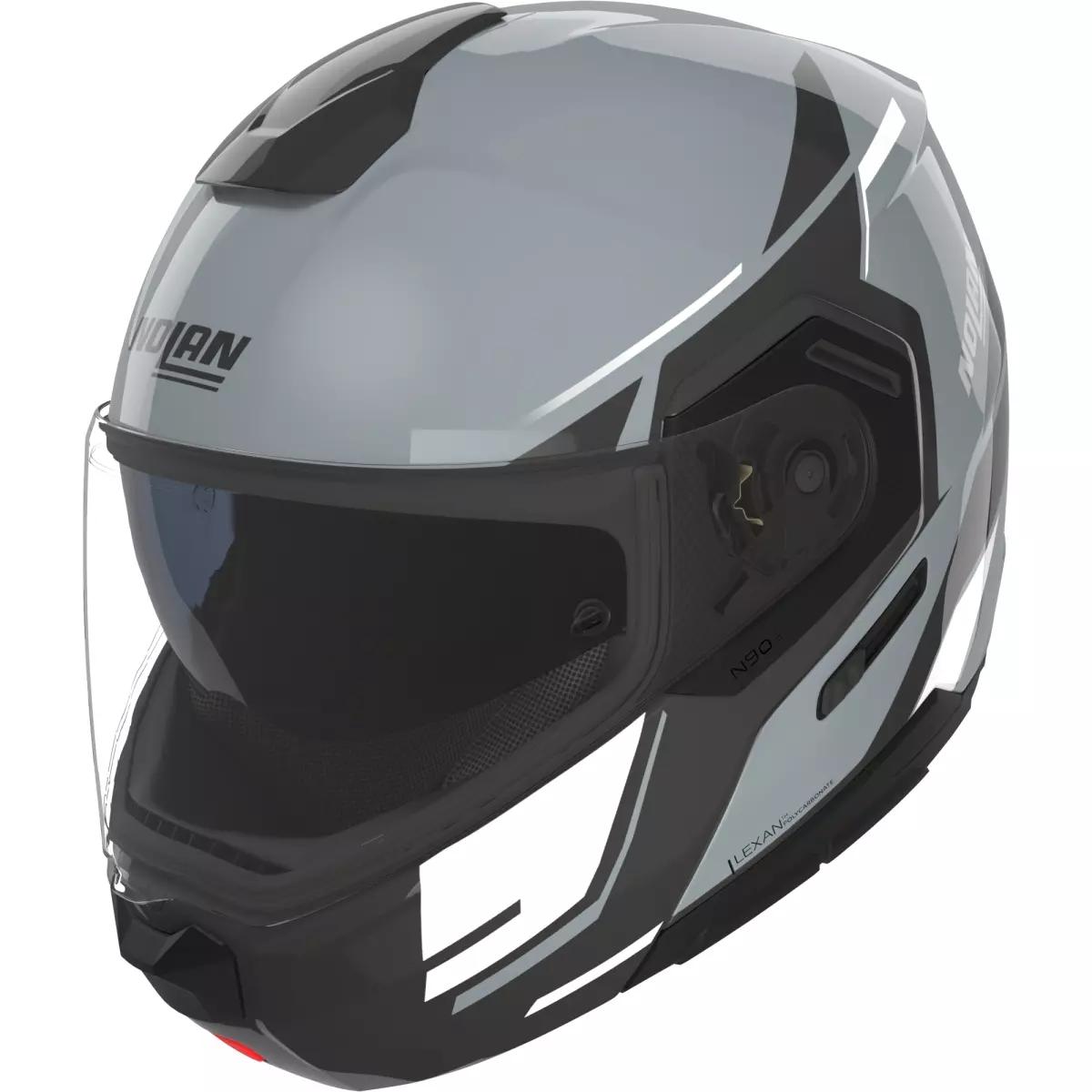 Nolan vous présente son casque modulable, le N90-3 06 Sincrono 352 en coloris gris, noir et blanc.