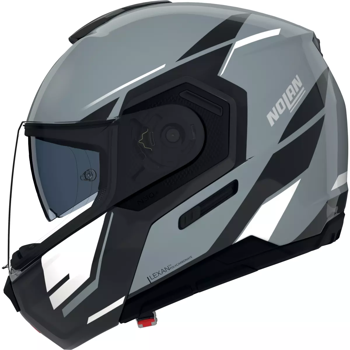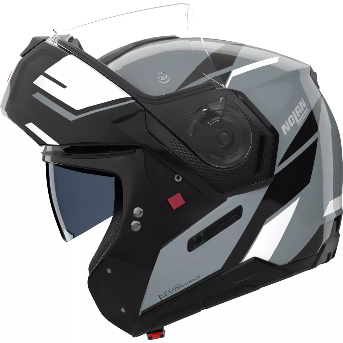 Le Nolan N90-3 est un casque modulable conçu pour les motards souhaitant allier protection, confort et praticité lors de leurs trajets quotidiens comme sur longues distances. Fabriqué à 100 % en Italie, il profite d’un savoir-faire haut de gamme et d’une conception en Lexan™ polycarbonate, un matériau reconnu pour sa résistance supérieure aux chocs et sa durabilité. Ce modèle d’entrée de gamme dans la série des modulables Nolan offre un rapport qualité/prix remarquable, sans compromis sur la sécurité ni le confort.
