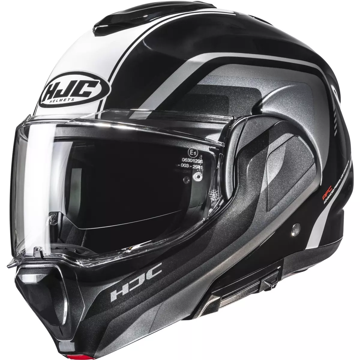 HJC vous présente son casque modulable, le F100 Reff MC21 en coloris noir et gris.