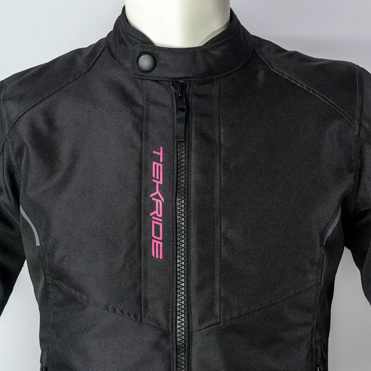 Tekride vous présente sa veste moto toutes saisons pour femme, la Lady Luna en noir et rose.