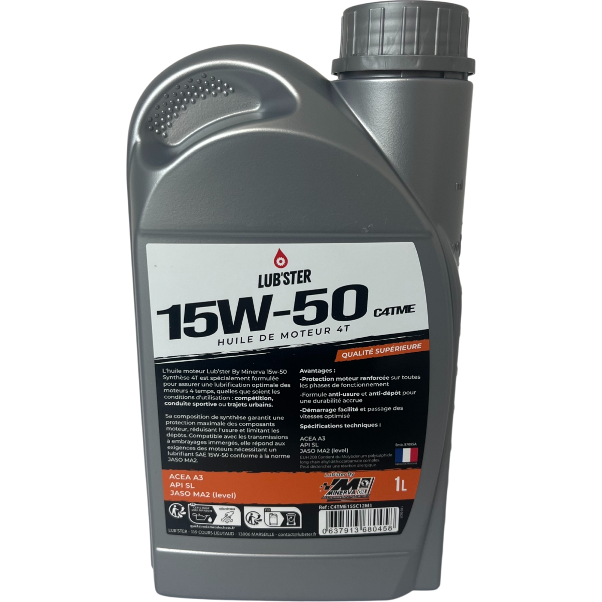 Lub'ster By Minerva nous propose l'huile moteur 4T 15W50 100% synthétique en 1 Litre